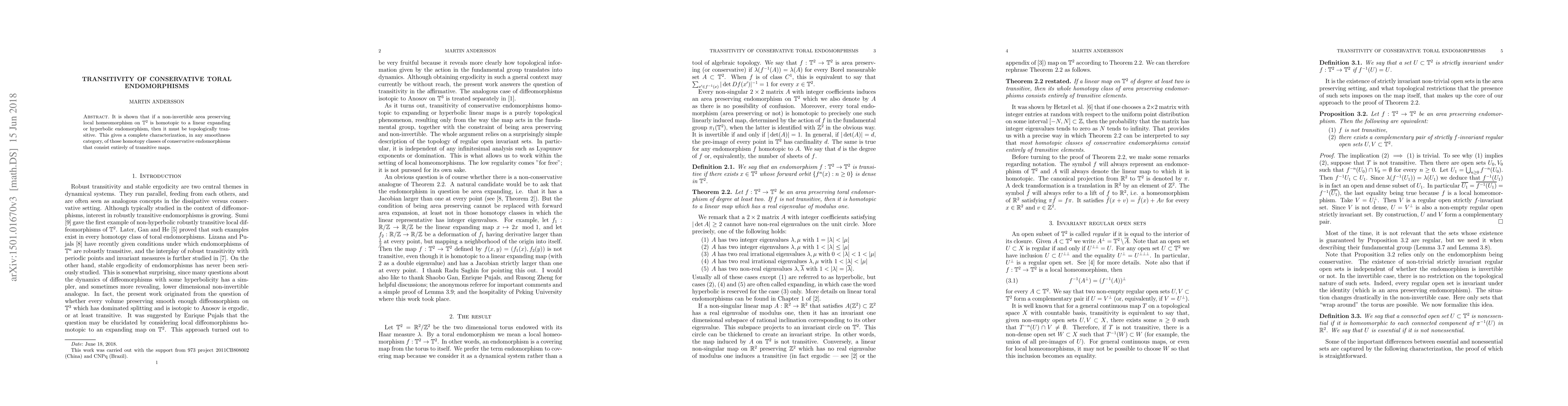 The work extends previous results by offering a complete characterization of transitive conservative endomorphisms on the 2-torus, incorporating probabilistic methods to demonstrate the prevalence of transitive homotopy classes.