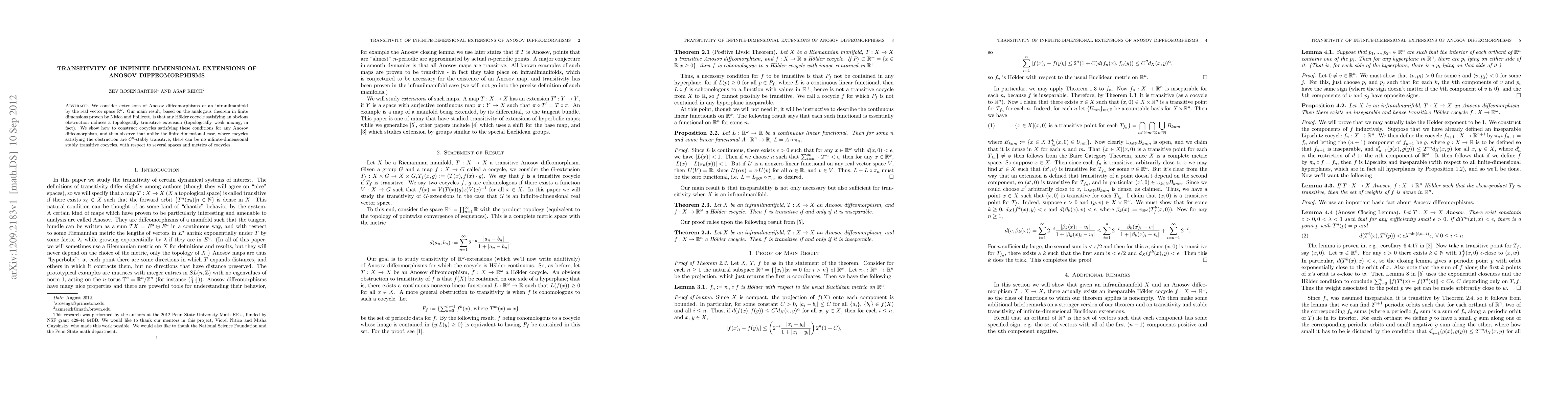 This paper explores infinite-dimensional extensions of Anosov diffeomorphisms on infranilmanifolds by R^ω, showing that any Holder cocycle with a specific obstruction induces a topologically transitive extension. Unlike in finite dimensions, no such infinite-dimensional cocycles can be stably transitive.