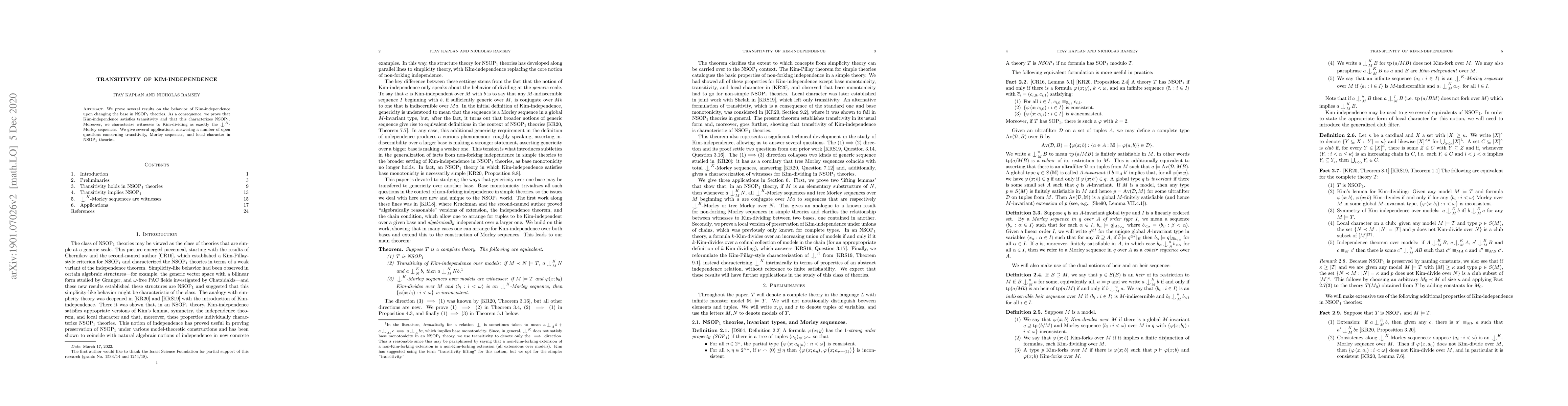 We prove several results on the behavior of Kim-independence upon changing the base in NSOP$_{1}$ theories. As a consequence, we prove that Kim-independence satisfies transitivity and that this characterizes NSOP$_{1}$. Moreover, we characterize witnesses to Kim-dividing as exactly the $\ind^{K}$-Morley sequences. We give several applications, answering a number of open questions concerning transitivity, Morley sequences, and local character in NSOP$_{1}$ theories.