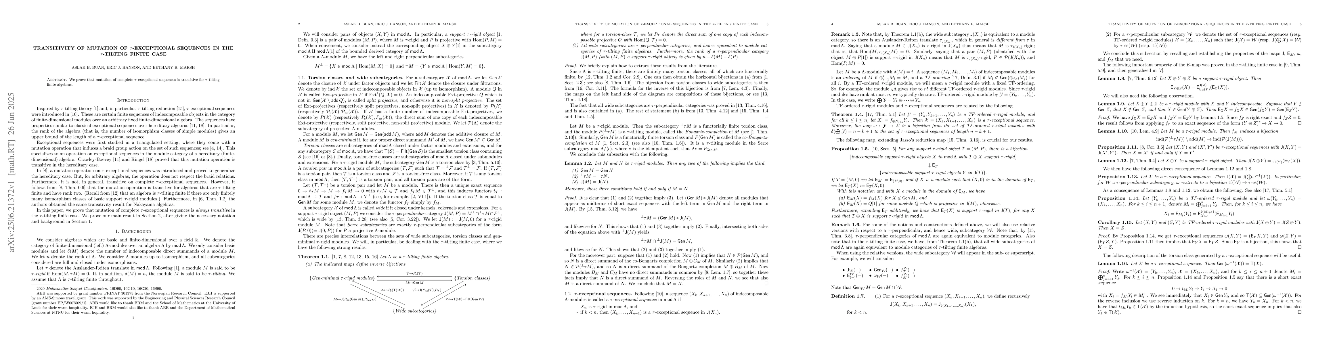 The paper provides a rigorous proof of the transitivity of mutation on τ-exceptional sequences, employing detailed analysis of mutation orbits, gen-minimal modules, and properties of wide subcategories.