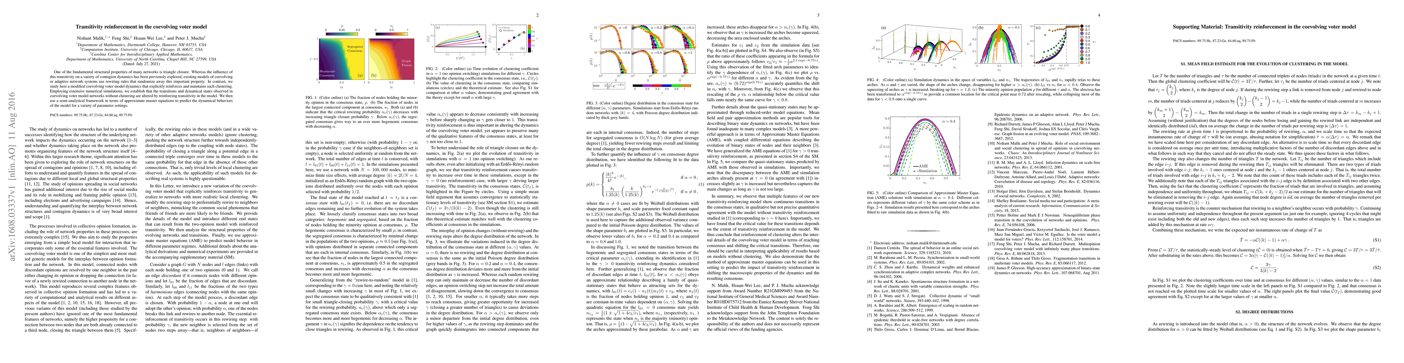 This paper investigates a modified coevolving voter model that reinforces triangle closure, demonstrating how this transitivity impacts network dynamics. Numerical simulations and semi-analytical methods reveal altered transitions and states compared to models that randomize network clustering.