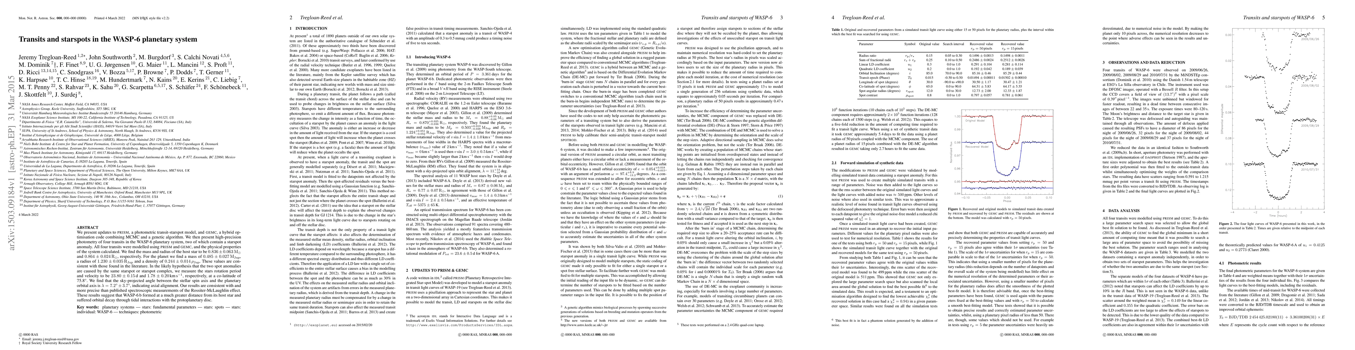 This paper updates photometric models to analyze transits and starspots in the WASP-6 planetary system, revealing precise measurements of the host star's mass and radius, and the planet's mass, radius, and density. The study finds evidence of starspot anomalies and measures the star's rotation period, suggesting the planet formed farther out and migrated inward via tidal interactions.