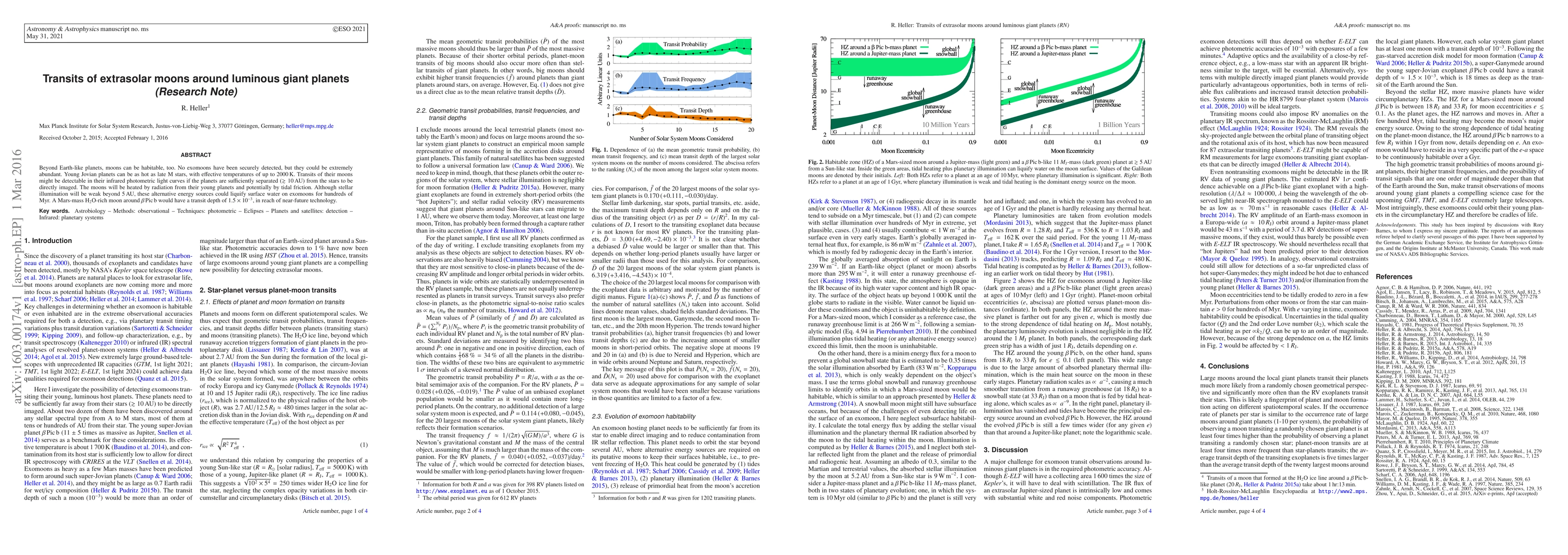 This paper explores the potential for detecting transits of extrasolar moons around luminous giant planets, suggesting that these moons could be habitable due to heating from their planets and tidal friction. Near-future technology could detect such transits, especially for moons around planets like β Pic b, which could have significant water content.