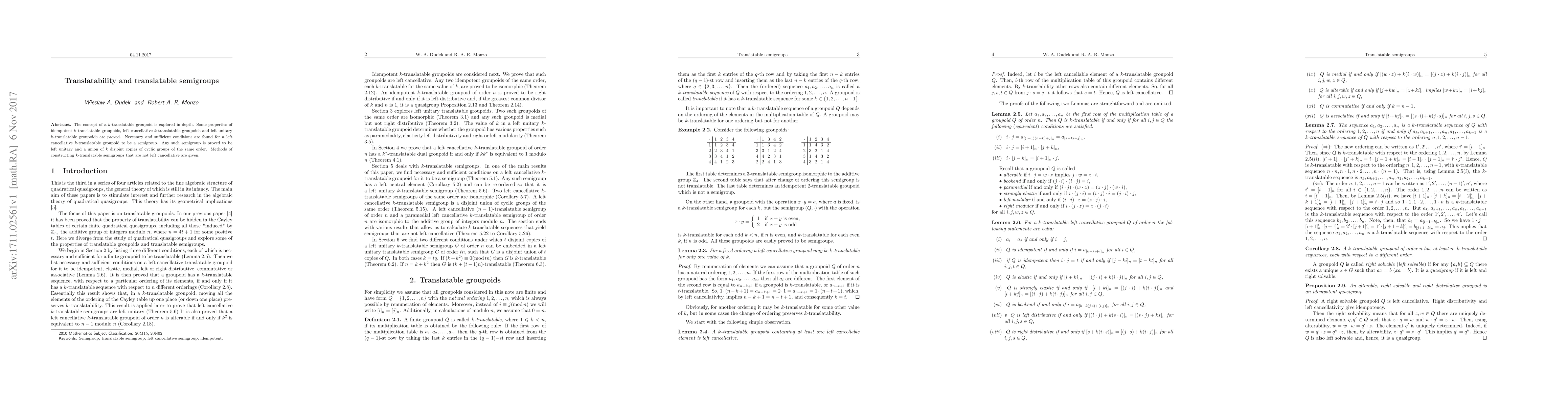 The concept of a k-translatable groupoid is explored in depth. Some properties of idempotent k-translatable groupoids, left cancellative k-translatable groupoids and left unitary k-translatable groupoids are proved. Necessary and sufficient conditions are found for a left cancellative k-translatable groupoid to be a semigroup. Any such semigroup is proved to be left unitary and a union of disjoint copies of cyclic groups of the same order. Methods of constructing k-translatable semigroups that are not left cancellative are given.