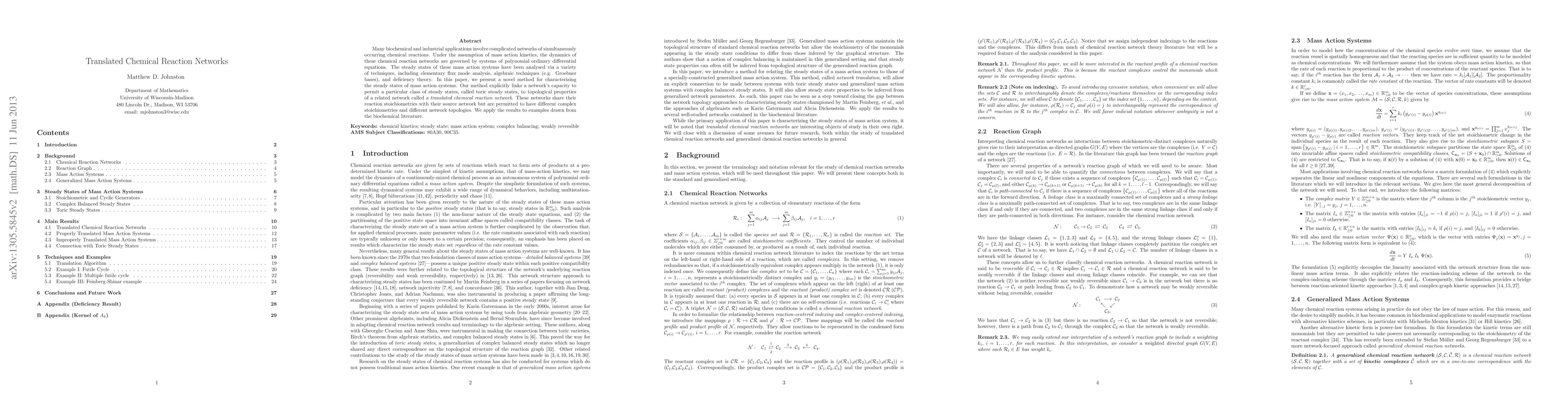 Many biochemical and industrial applications involve complicated networks of simultaneously occurring chemical reactions. Under the assumption of mass action kinetics, the dynamics of these chemical reaction networks are governed by systems of polynomial ordinary differential equations. The steady states of these mass action systems have been analysed via a variety of techniques, including elementary flux mode analysis, algebraic techniques (e.g. Groebner bases), and deficiency theory. In this paper, we present a novel method for characterizing the steady states of mass action systems. Our method explicitly links a network's capacity to permit a particular class of steady states, called toric steady states, to topological properties of a related network called a translated chemical reaction network. These networks share their reaction stoichiometries with their source network but are permitted to have different complex stoichiometries and different network topologies. We apply the results to examples drawn from the biochemical literature.