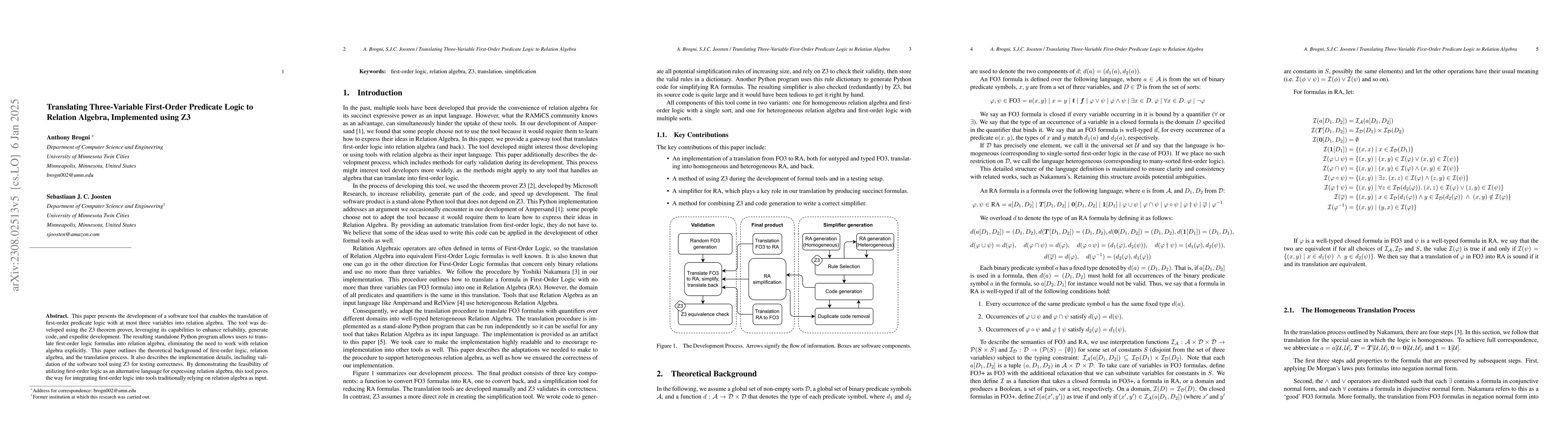 This paper develops a software tool translating first-order predicate logic into relation algebra using the Z3 theorem prover, enabling users to work with first-order logic expressions without needing explicit relation algebra knowledge. The tool's implementation and validation are discussed, highlighting its potential to integrate first-order logic into relation algebra-based tools.