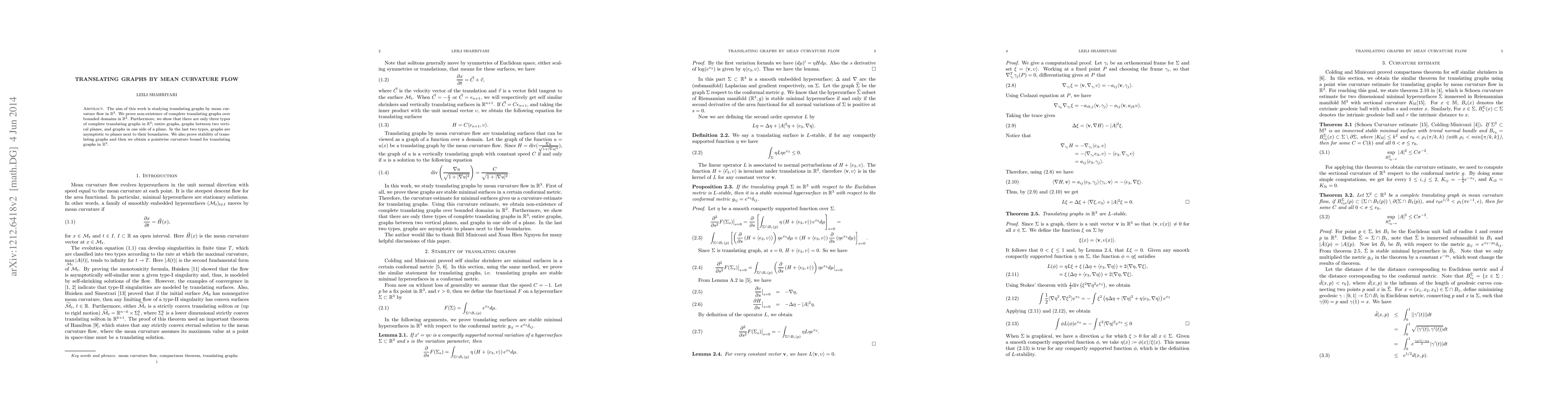 The aim of this work is studying translating graphs by mean curvature flow in $\Real^3$. We prove non-existence of complete translating graphs over bounded domains in $\Real^2$. Furthermore, we show that there are only three types of complete translating graphs in $\Real^3$; entire graphs, graphs between two vertical planes, and graphs in one side of a plane. In the last two types, graphs are asymptotic to planes next to their boundaries. We also prove stability of translating graphs and then we obtain a pointwise curvature bound for translating graphs in $\Real^3$.