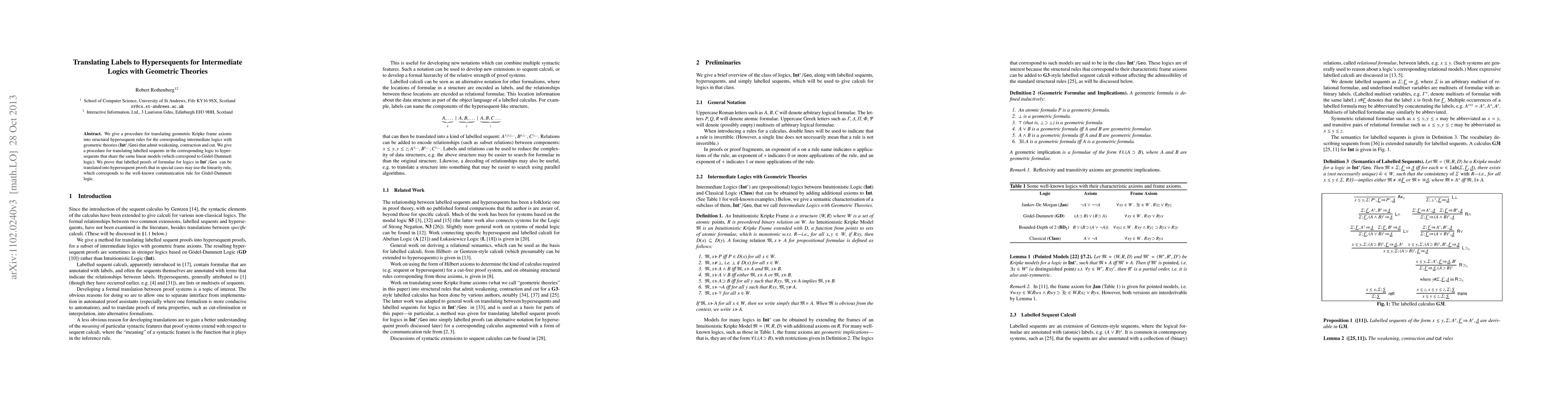 This paper proposes a method for translating geometric Kripke frame axioms into structural hypersequent rules for intermediate logics, specifically Int^*/Geo. It also demonstrates how labelled sequents can be converted into hypersequents while preserving their linear models, and proves that proofs in these logics can be transformed into hypersequent proofs using the linearity rule.