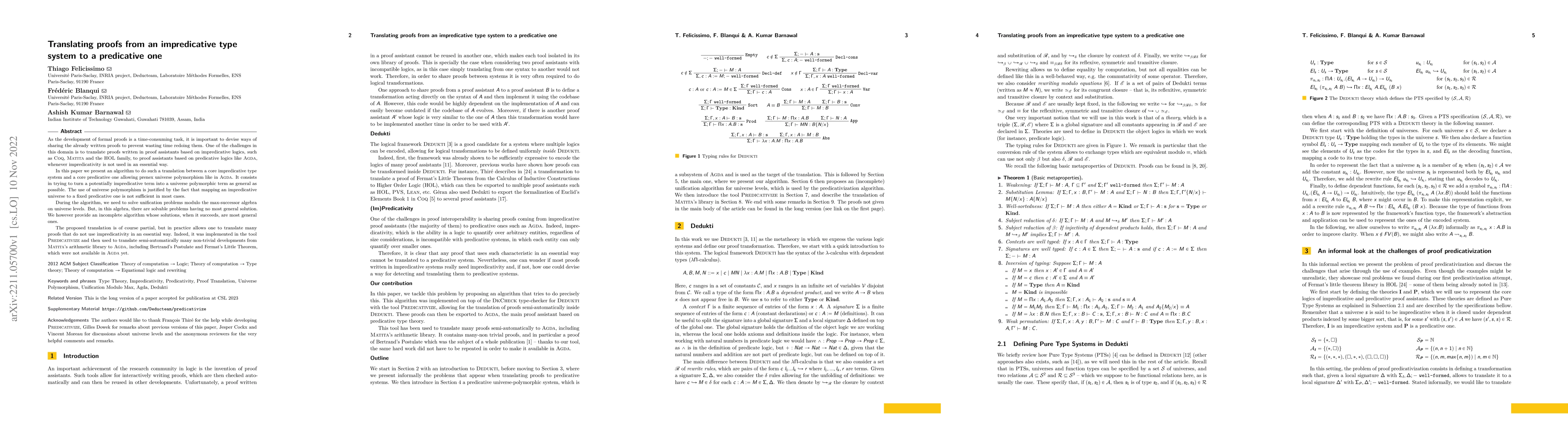 This research is significant as it addresses the challenge of sharing formal proofs across different proof assistants, preventing redundant work and enabling the reuse of existing proofs in predicative systems.