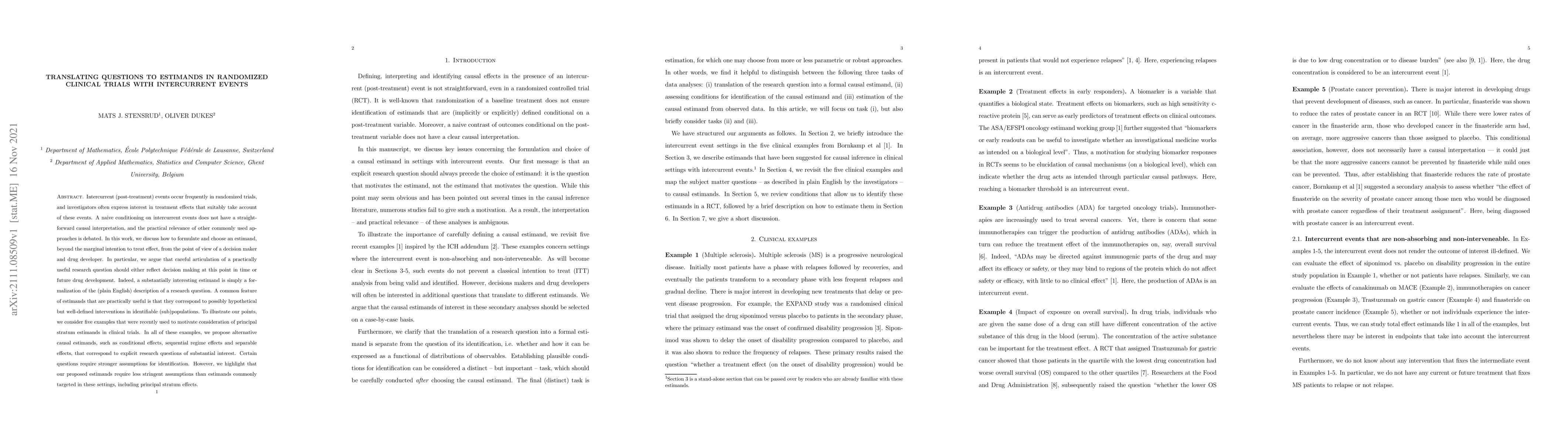 This paper discusses how to translate clinical trial questions into appropriate estimands, especially in the presence of intercurrent events, by framing them in terms of decision-making and drug development. It proposes alternative causal estimands that require less stringent assumptions compared to commonly used approaches.