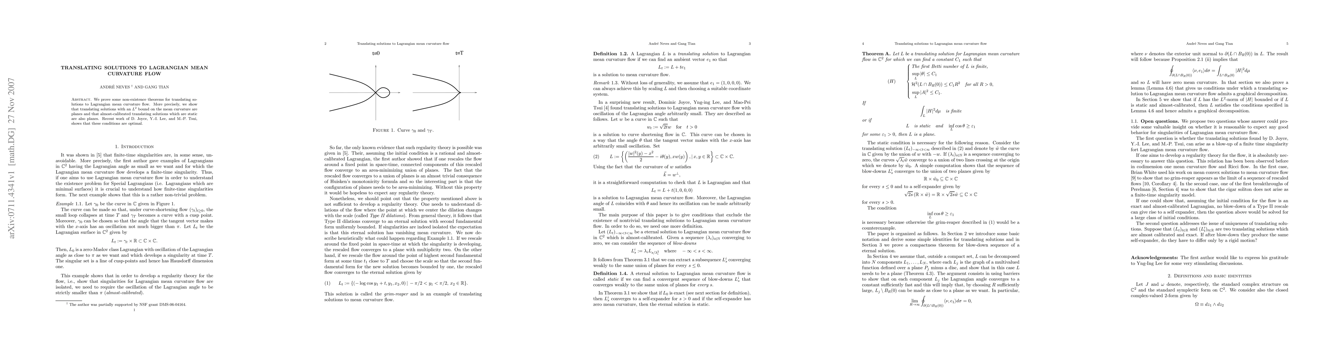 This paper proves non-existence theorems for translating solutions to Lagrangian mean curvature flow, showing that solutions with specific $L^2$ mean curvature bounds are planes. It also demonstrates that almost-calibrated static translating solutions are planes, confirming the optimality of these conditions.