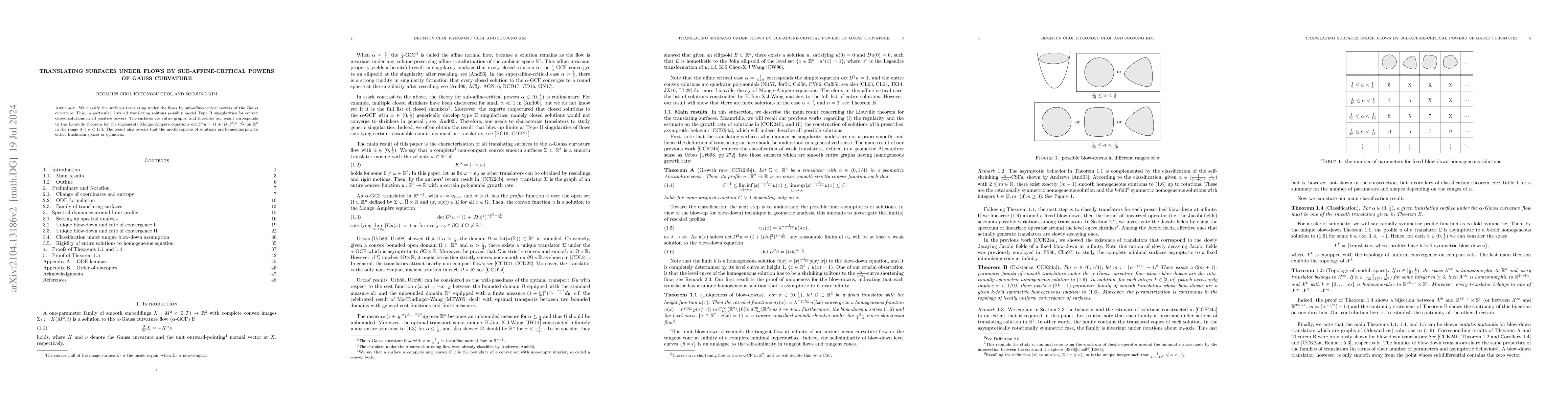 This research identifies and classifies all translating surfaces under flows driven by sub-affine-critical powers of Gauss curvature, which model Type II singularities in 3D curvature flow. The study shows that level sets of these surfaces converge to a curve under rescaling, revealing the surfaces' asymptotic behavior and utilizing slowly decaying Jacobi fields to analyze the moduli space. This work also addresses a Liouville theorem for a degenerate Monge-Ampere equation.