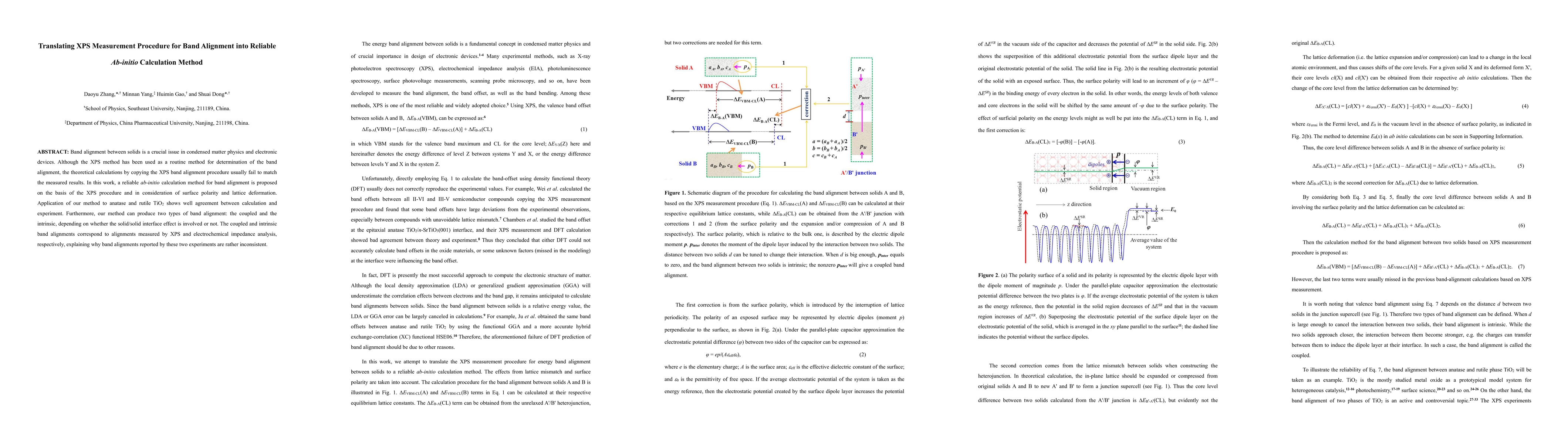 A reliable ab-initio calculation method for band alignment is proposed based on XPS procedure, showing agreement with experiments for anatase and rutile TiO2, and explaining inconsistent results from different experiments.