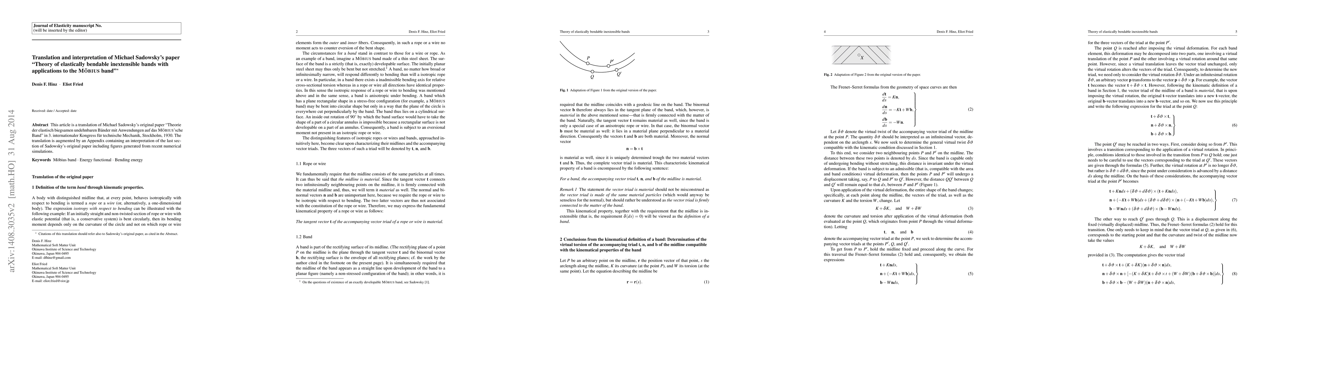 This paper translates and interprets Michael Sadowsky's 1930 work on elastically bendable inextensible bands, with a focus on the Möbius band. An appendix includes modern numerical simulations to clarify the original paper's final section.