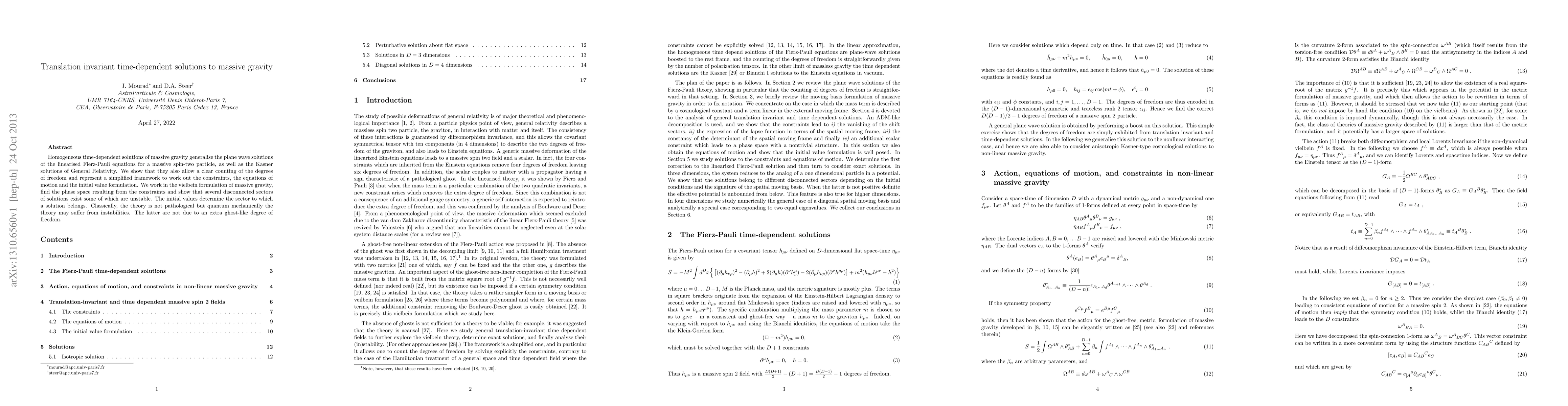 Homogeneous time-dependent solutions of massive gravity generalise the plane wave solutions of the linearised Fierz-Pauli equations for a massive spin-two particle, as well as the Kasner solutions of General Relativity. We show that they also allow a clear counting of the degrees of freedom and represent a simplified framework to work out the constraints, the equations of motion and the initial value formulation. We work in the vielbein formulation of massive gravity, find the phase space resulting from the constraints and show that several disconnected sectors of solutions exist some of which are unstable. The initial values determine the sector to which a solution belongs. Classically, the theory is not pathological but quantum mechanically the theory may suffer from instabilities. The latter are not due to an extra ghost-like degree of freedom.