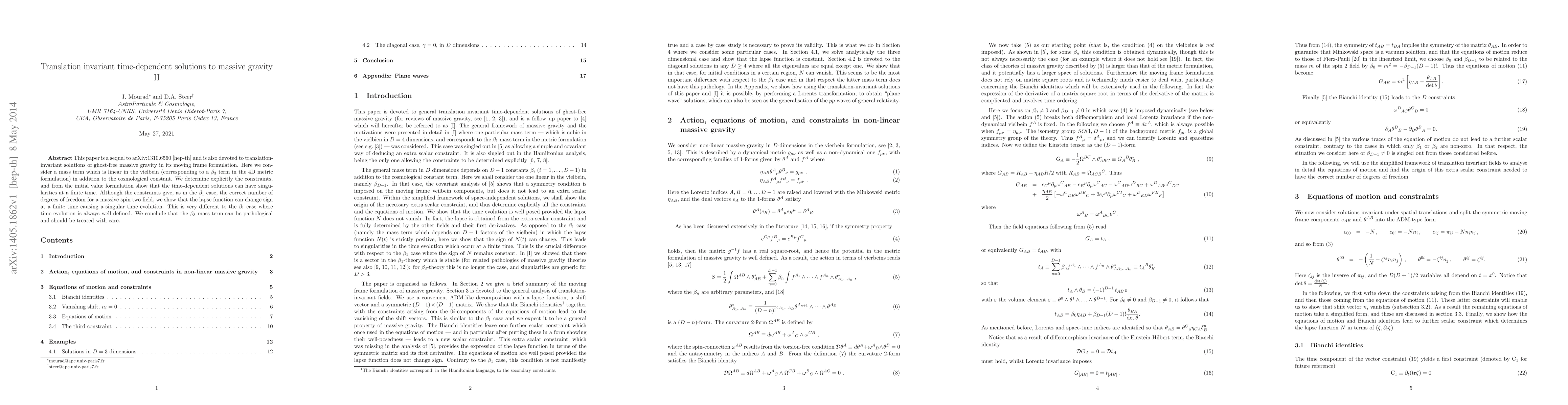 This paper is a sequel to arXiv:1310.6560 [hep-th] and is also devoted to translation-invariant solutions of ghost-free massive gravity in its moving frame formulation. Here we consider a mass term which is linear in the vielbein (corresponding to a $\beta_3$ term in the 4D metric formulation) in addition to the cosmological constant. We determine explicitly the constraints, and from the initial value formulation show that the time-dependent solutions can have singularities at a finite time. Although the constraints give, as in the $\beta_1$ case, the correct number of degrees of freedom for a massive spin two field, we show that the lapse function can change sign at a finite time causing a singular time evolution. This is very different to the $\beta_1$ case where time evolution is always well defined. We conclude that the $\beta_3$ mass term can be pathological and should be treated with care.