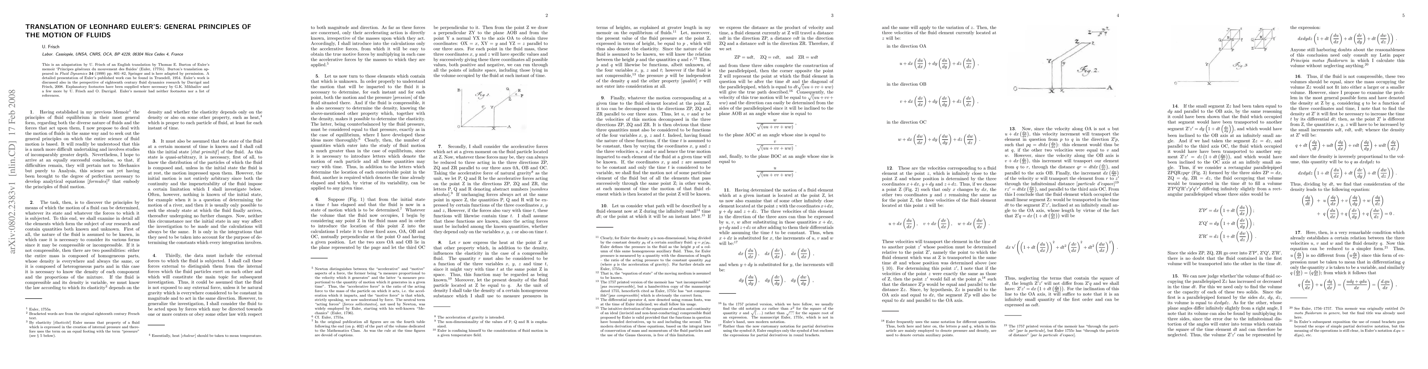 This paper presents an adaptation of Thomas E. Burton's English translation of Leonhard Euler's 1775 memoir on the general principles of fluid motion, with additional explanatory footnotes by G.K. Mikhailov, U. Frisch, and O. Darrigol. The original translation is sourced from Fluid Dynamics (1999). For further context, see Truesdell (1954) and Darrigol & Frisch (2008) on eighteenth-century fluid dynamics research.