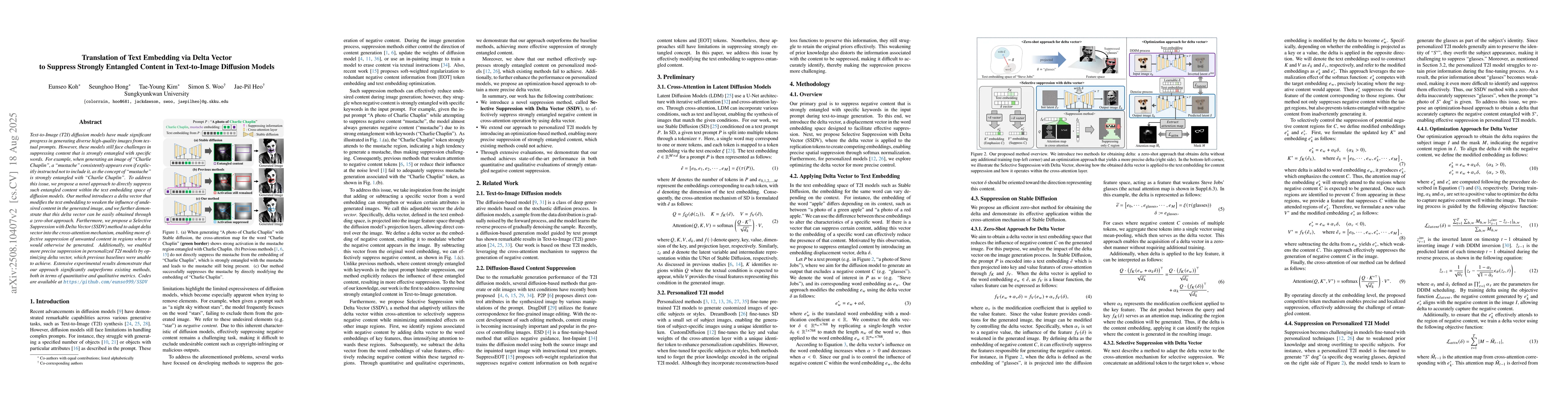The paper introduces a delta vector-based method for suppressing strongly entangled content in text-to-image diffusion models, enhancing control over generated images.