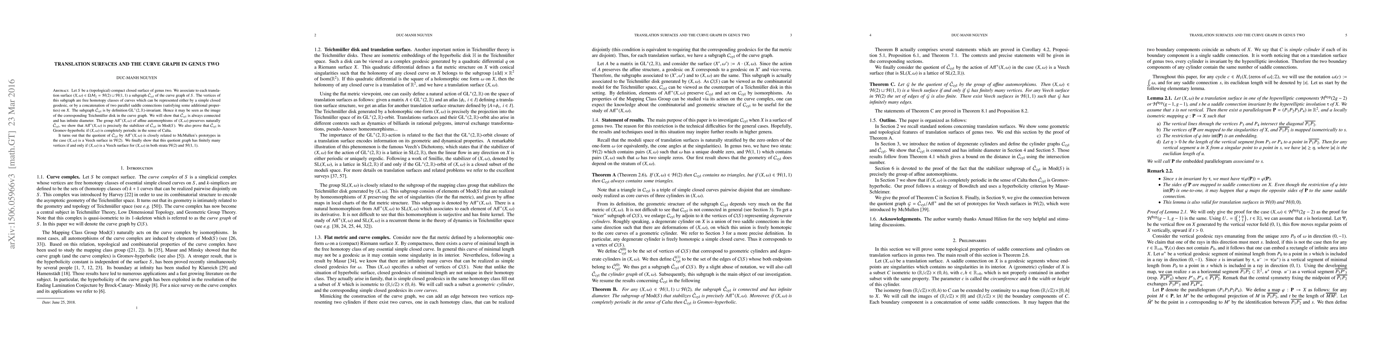 Let $S$ be a (topological) compact closed surface of genus two. We associate to each translation surface $(X,\omega) \in \mathcal{H}(2)\sqcup\mathcal{H}(1,1)$ a subgraph $\hat{\mathcal{C}}_{\rm cyl}$ of the curve graph of $S$. The vertices of this subgraph are free homotopy classes of curves which can be represented either by a simple closed geodesic, or by a concatenation of two parallel saddle connections (satisfying some additional properties) on $X$. The subgraph $\hat{\mathcal{C}}_{\rm cyl}$ is by definition $\mathrm{GL}^+(2,\mathbb{R})$-invariant. Hence, it may be seen as the image of the corresponding Teichm\"uller disk in the curve graph. We will show that $\hat{\mathcal{C}}_{\rm cyl}$ is always connected and has infinite diameter. The group ${\rm Aff}^+(X,\omega)$ of affine automorphisms of $(X,\omega)$ preserves naturally $\hat{\mathcal{C}}_{\rm cyl}$, we show that ${\rm Aff}^+(X,\omega)$ is precisely the stabilizer of $\hat{\mathcal{C}}_{\rm cyl}$ in ${\rm Mod}(S)$. We also prove that $\hat{\mathcal{C}}_{\rm cyl}$ is Gromov-hyperbolic if $(X,\omega)$ is completely periodic in the sense of Calta. It turns out that the quotient of $\hat{\mathcal{C}}_{\rm cyl}$ by ${\rm Aff}^+(X,\omega)$ is closely related to McMullen's prototypes in the case $(X,\omega)$ is a Veech surface in $\mathcal{H}(2)$. We finally show that this quotient graph has finitely many vertices if and only if $(X,\omega)$ is a Veech surface for $(X,\omega)$ in both strata $\mathcal{H}(2)$ and $\mathcal{H}(1,1)$.