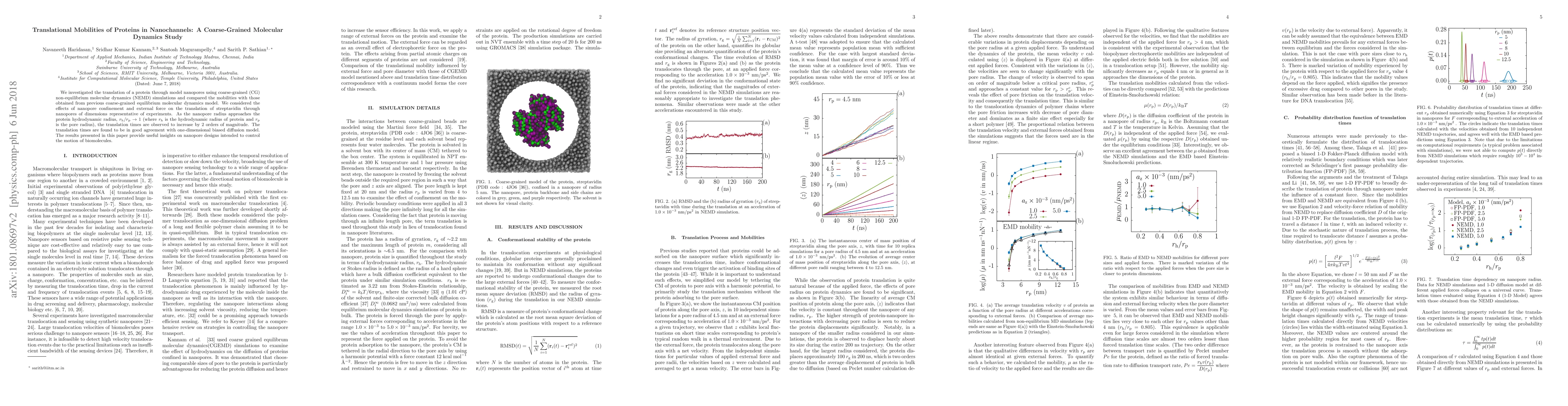 This paper uses coarse-grained non-equilibrium molecular dynamics simulations to study the translational mobility of streptavidin through nanopores, revealing that translation times increase significantly as pore size approaches the protein's hydrodynamic radius. The findings align well with a one-dimensional biased diffusion model and offer insights for designing nanopores to control biomolecular motion.