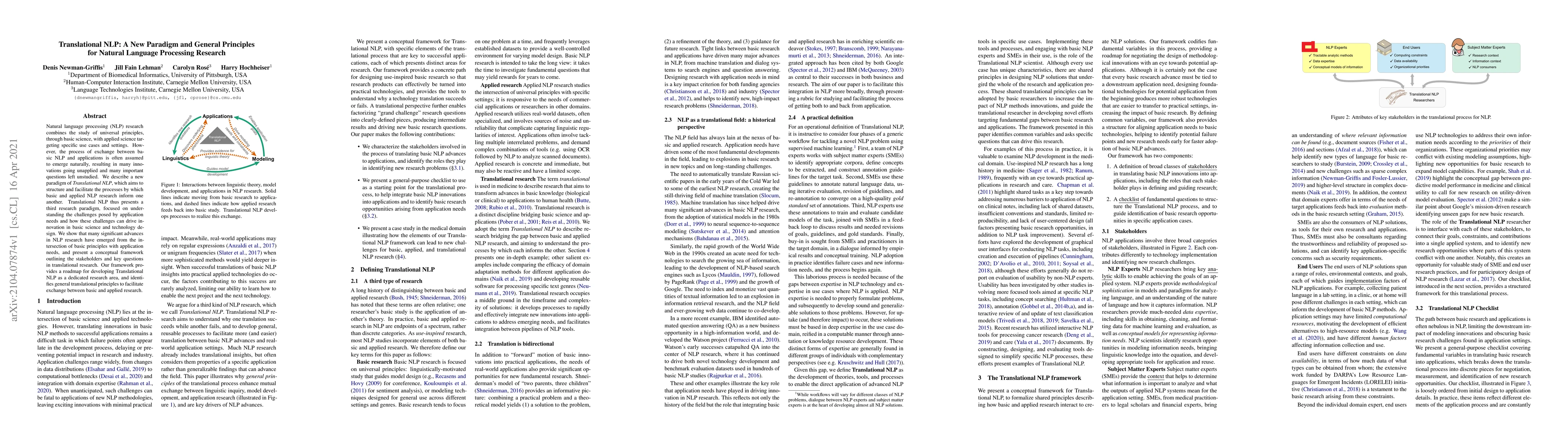 This paper introduces Translational NLP, a new paradigm aimed at bridging the gap between basic and applied NLP research, emphasizing the need for structured exchange to drive innovation. It proposes a framework outlining stakeholders and key questions to facilitate this exchange, and identifies general principles for effective translational research.