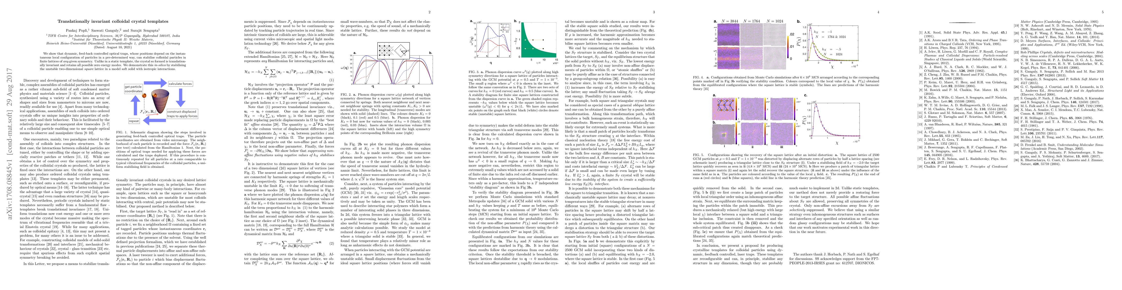 We show that dynamic, feed-back controlled optical traps, whose positions depend on the instantaneous local configuration of particles in a pre-determined way, can stabilise colloidal particles in finite lattices of ${\it any}$ given symmetry. Unlike in a static template, the crystal so formed is translationally invariant and retains all possible zero energy modes. We demonstrate this ${\it in-silico}$ by stabilising the unstable two-dimensional ${\it square}$ lattice in a model soft solid with isotropic interactions.