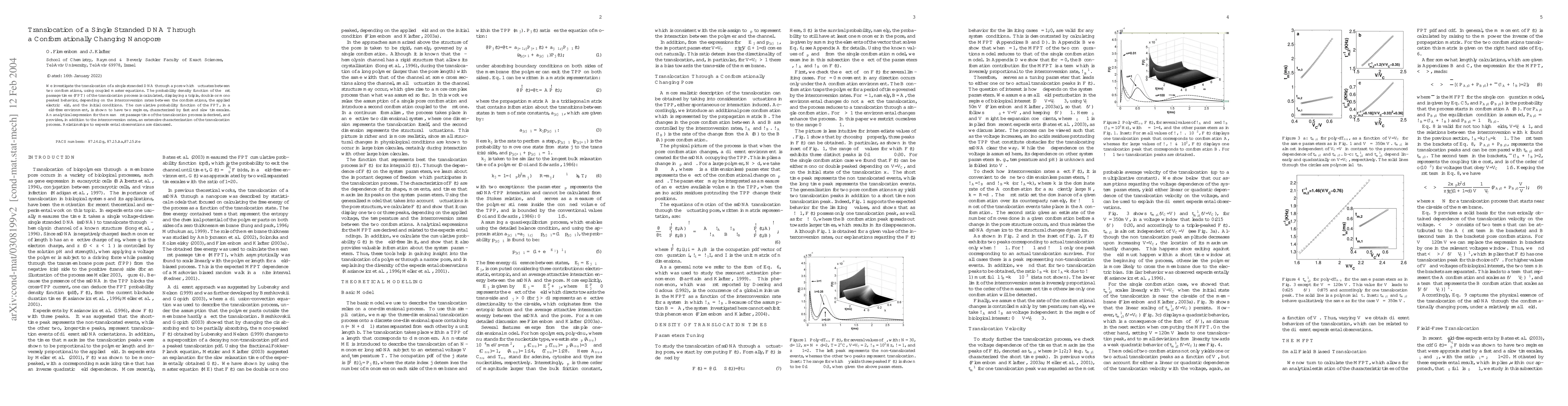 Researchers studied how a single-stranded DNA molecule moves through a nanopore that changes shape, finding it can move in three different speeds depending on the conditions, and derived an equation to predict its movement times.