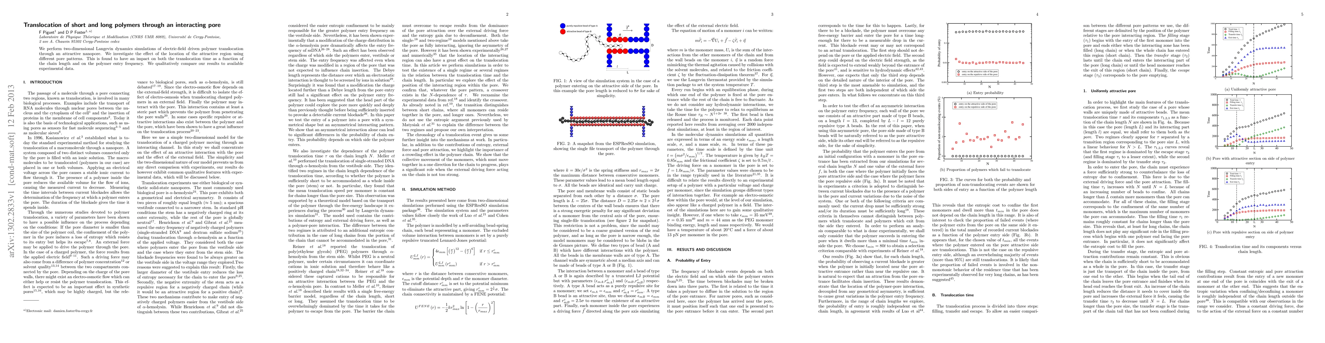 We perform two-dimensional Langevin dynamics simulations of electric-field driven polymer translocation through an attractive nanopore. We investigate the effect of the location of the attractive region using different pore patterns. This is found to have an impact on both the translocation time as a function of the chain length and on the polymer entry frequency. We qualitatively compare our results to available experimental data.