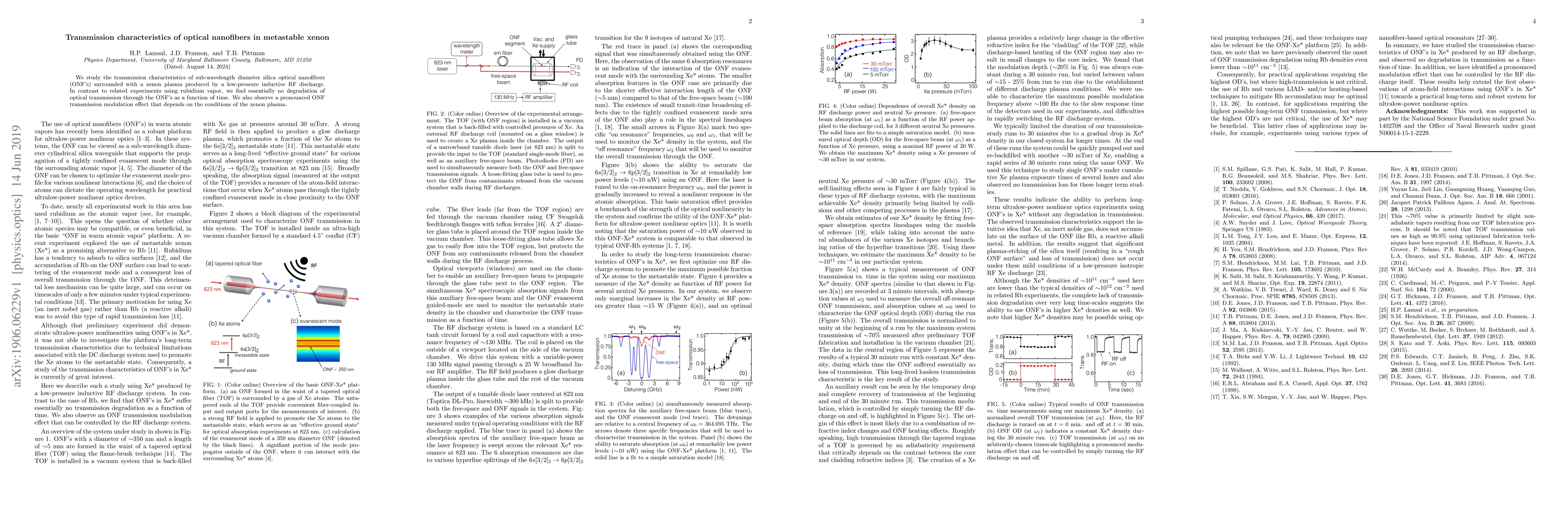This study examines optical nanofibers' transmission in xenon plasma, revealing minimal transmission degradation over time unlike in rubidium vapor experiments. Notably, transmission modulation by xenon plasma conditions is observed.