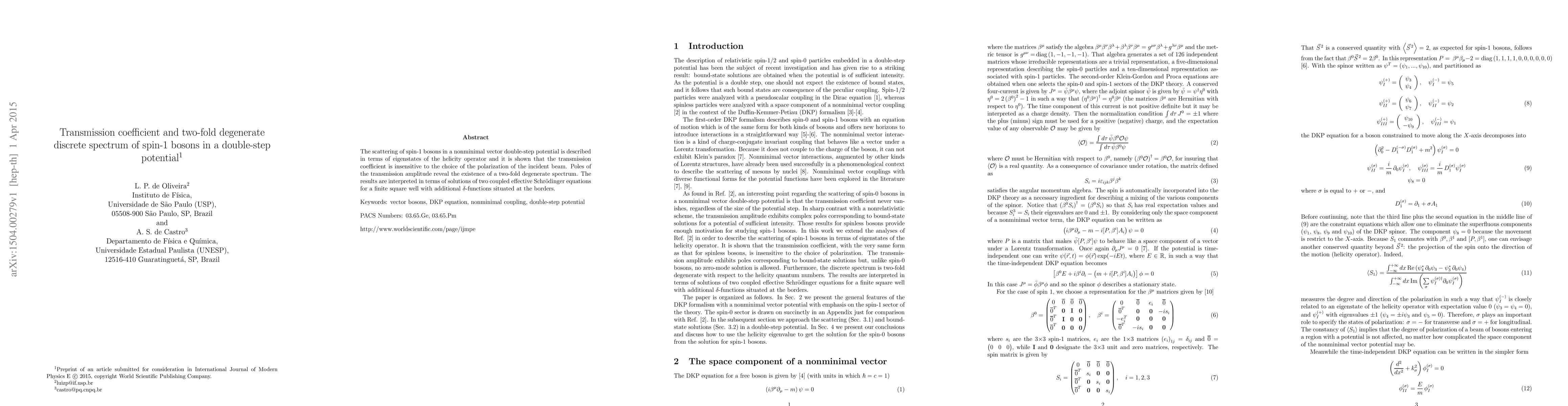 This paper investigates the scattering behavior of spin-1 bosons in a nonminimal vector double-step potential, revealing that the transmission coefficient remains unaffected by the polarization of the incident beam. It identifies a two-fold degenerate discrete spectrum through poles in the transmission amplitude, interpreted via solutions of two coupled effective Schrödinger equations.