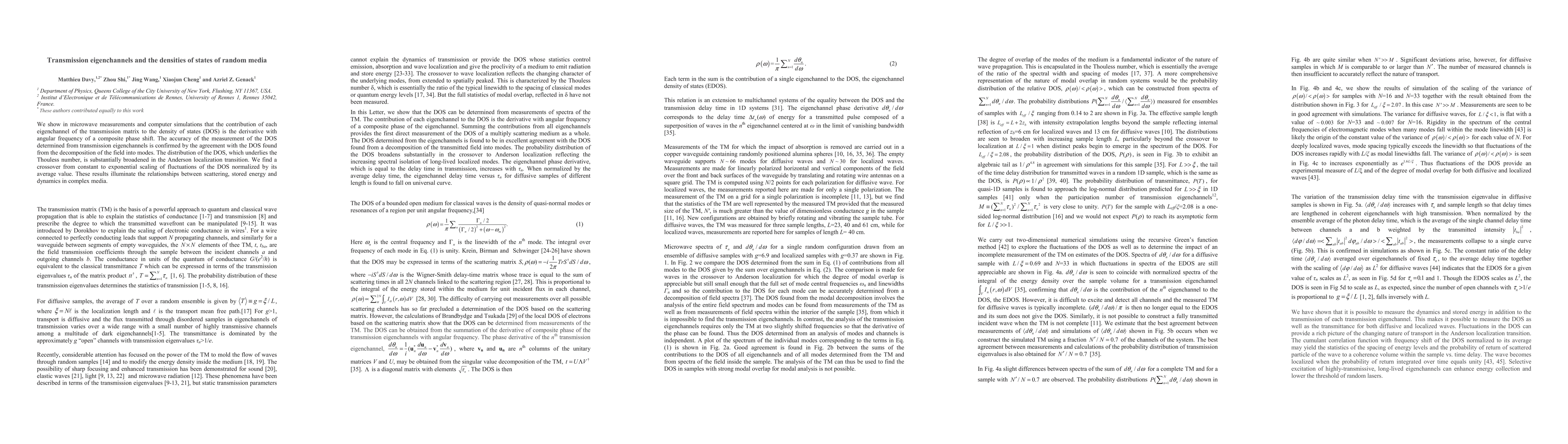 Researchers found that the density of states in random media can be determined from the eigenchannels of the transmission matrix, revealing a crossover from constant to exponential scaling of fluctuations during the Anderson localization transition.