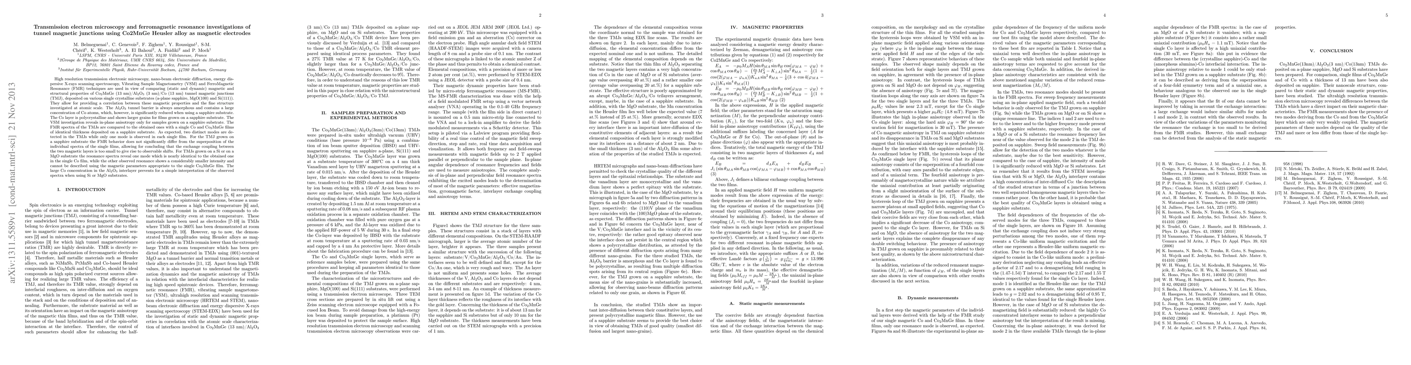 Researchers investigated tunnel magnetic junctions using Co2MnGe alloy as magnetic electrodes, finding that exchange coupling between layers is too small to cause significant shifts in ferromagnetic resonance spectra on certain substrates.