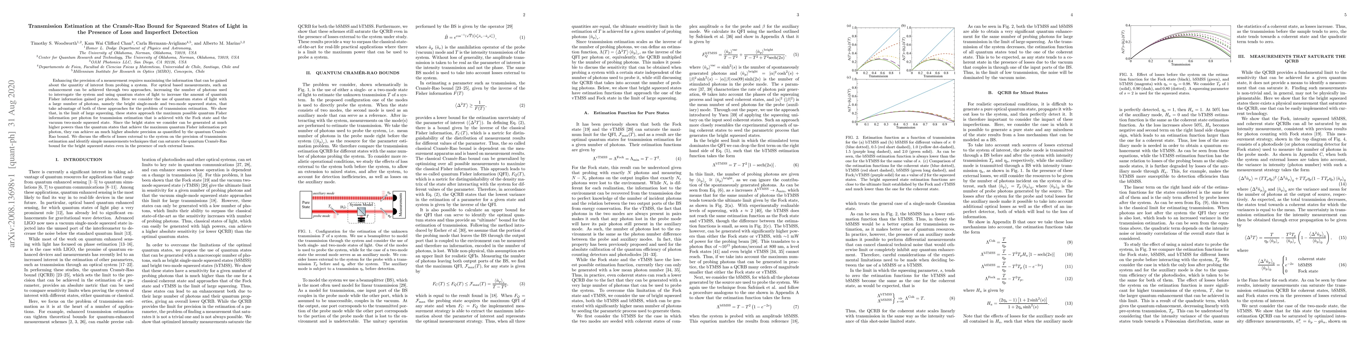 This paper investigates the precision of transmission estimation using bright squeezed states of light, demonstrating that these states achieve maximum quantum Fisher information per photon in large squeezing limits. Despite external losses, it identifies measurement techniques to saturate the quantum Cramér-Rao bound, showcasing higher absolute precision compared to states with maximum quantum Fisher information per photon.
