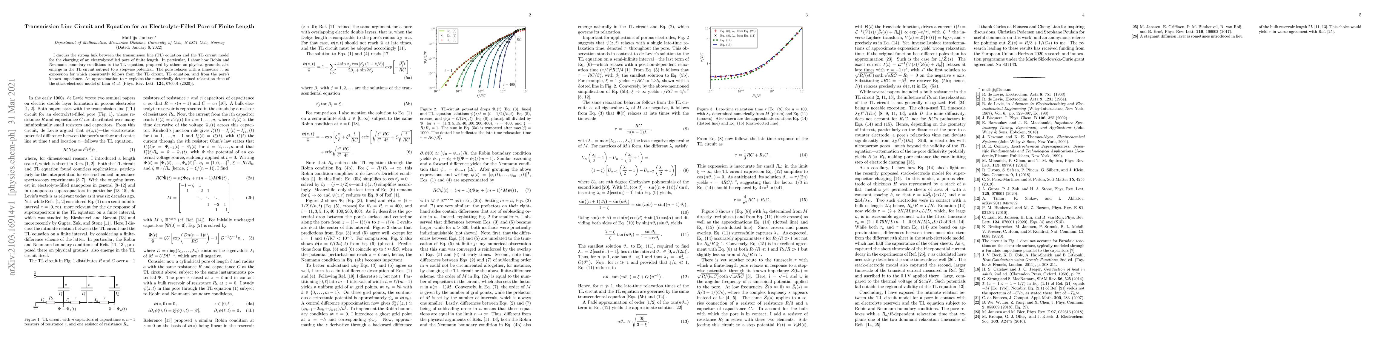 This paper explores the connection between the transmission line equation and circuit model for charging an electrolyte-filled pore of finite length, showing how Robin and Neumann boundary conditions arise naturally. It also provides a consistent expression for the pore's relaxation time $\tau$ derived from both the transmission line circuit and equation, aligning with numerical findings.