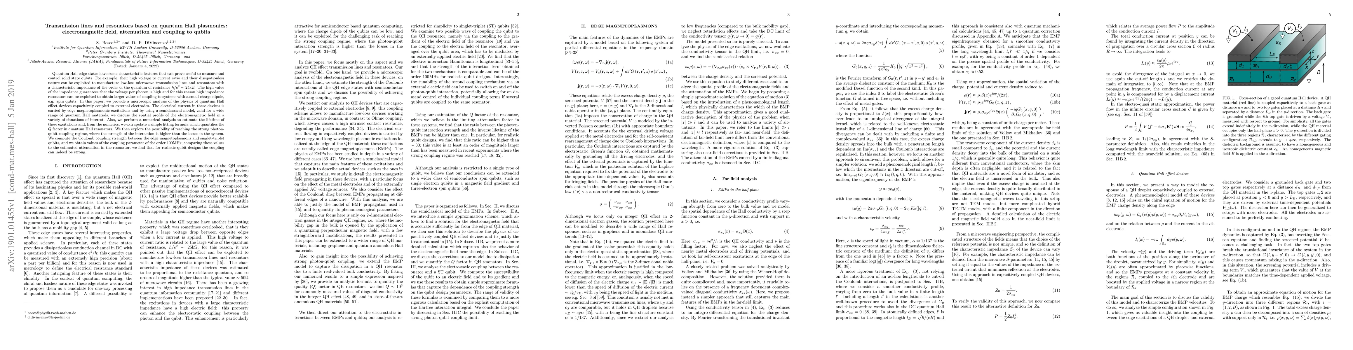 This paper investigates the use of quantum Hall edge states to create low-loss microwave transmission lines and resonators, characterized by a high impedance of $h/e^2$. It explores the electromagnetic field's spatial profile, attenuation, and coupling to qubits, finding potential for strong photon-qubit coupling in the order of 100 MHz.