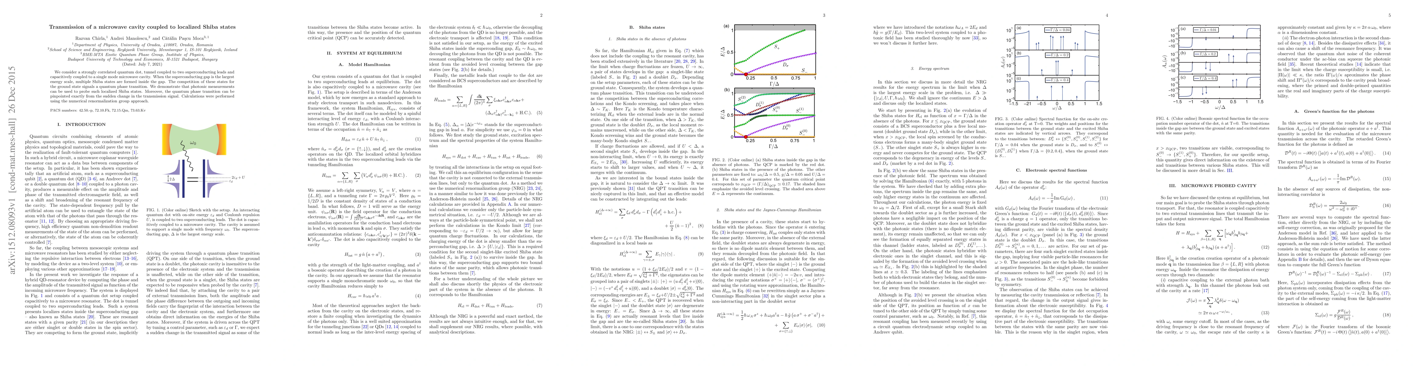 This paper investigates a quantum dot strongly coupled to superconducting leads and a microwave cavity, focusing on the formation of Shiba states and their competition leading to a quantum phase transition. Photonic measurements reveal the transition through sudden changes in transmission signals, analyzed using the numerical renormalization group.
