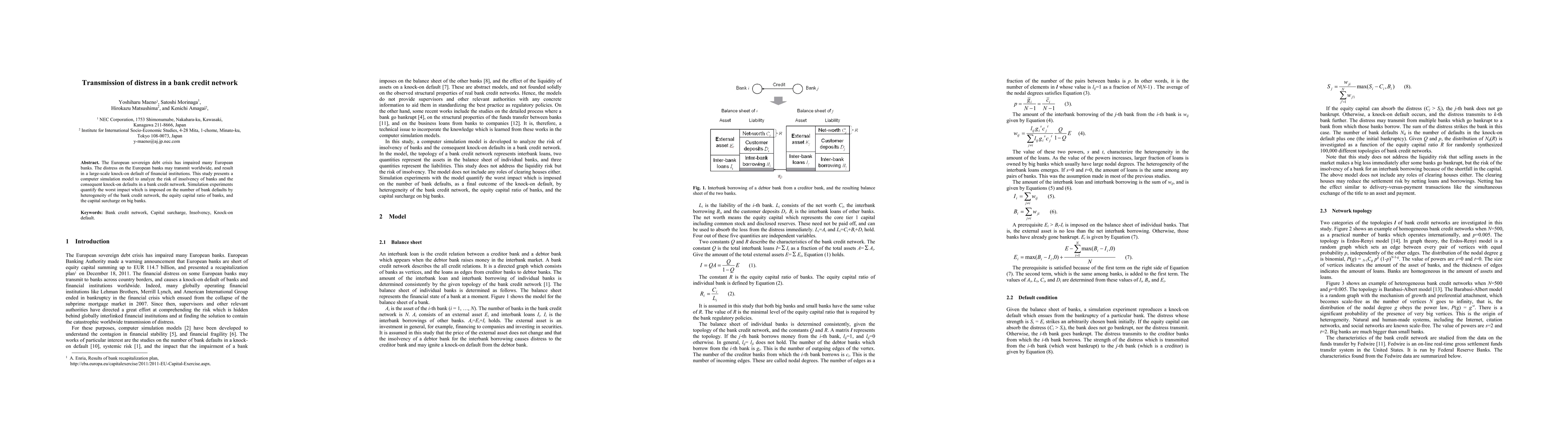 The European sovereign debt crisis has impaired many European banks. The distress on the European banks may transmit worldwide, and result in a large-scale knock-on default of financial institutions. This study presents a computer simulation model to analyze the risk of insolvency of banks and defaults in a bank credit network. Simulation experiments reproduce the knock-on default, and quantify the impact which is imposed on the number of bank defaults by heterogeneity of the bank credit network, the equity capital ratio of banks, and the capital surcharge on big banks.
