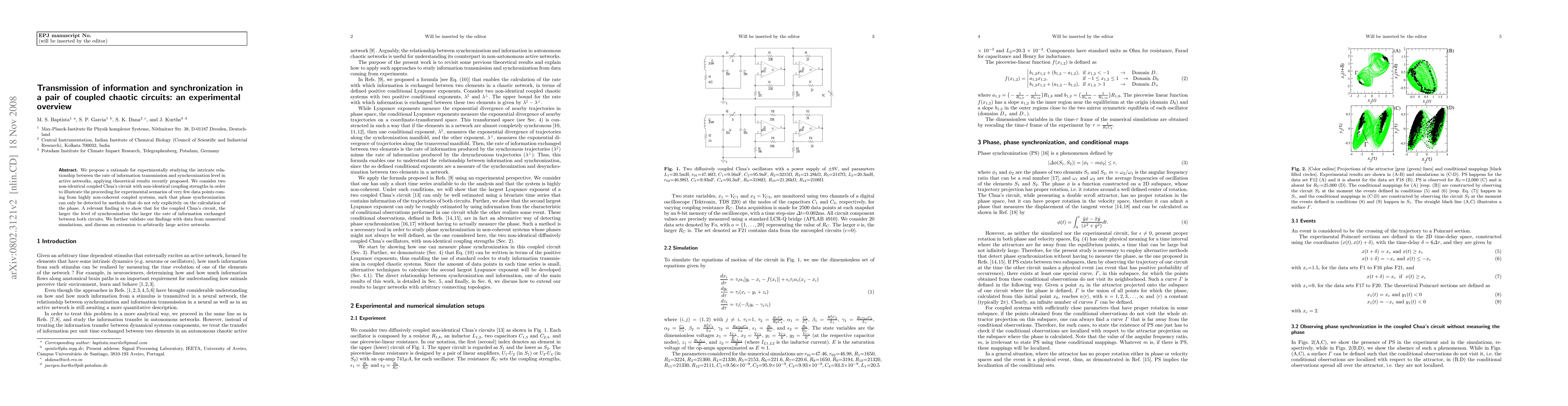 This paper explores the relationship between synchronization and information transmission in coupled chaotic circuits using Chua's circuits, demonstrating that higher synchronization levels correlate with greater information exchange. Experimental and numerical results support the theoretical findings, suggesting broader implications for active network synchronization.