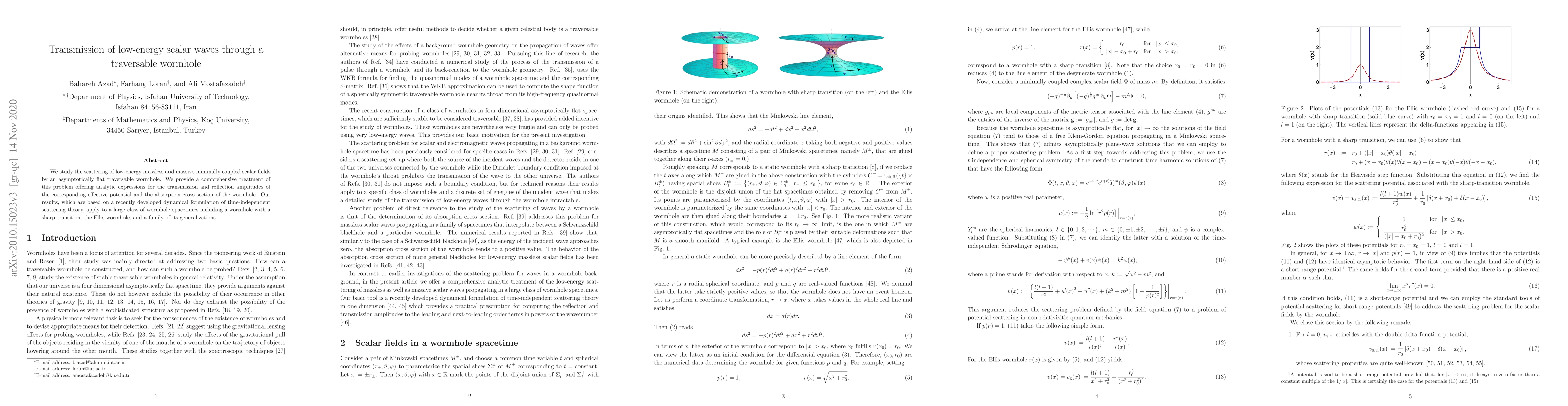 Researchers studied how low-energy particles interact with traversable wormholes, finding analytic expressions for transmission and reflection amplitudes and absorption cross sections.