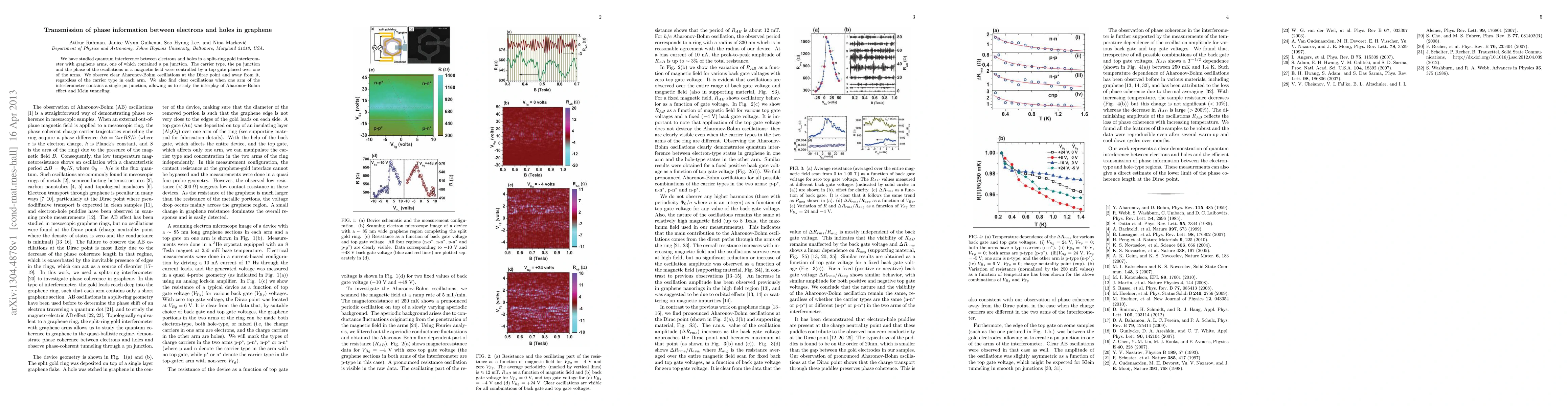 We have studied quantum interference between electrons and holes in a split-ring gold interferometer with graphene arms, one of which contained a pn junction. The carrier type, the pn junction and the phase of the oscillations in a magnetic field were controlled by a top gate placed over one of the arms. We observe clear Aharonov-Bohm oscillations at the Dirac point and away from it, regardless of the carrier type in each arm. We also find clear oscillations when one arm of the interferometer contains a single pn junction, allowing us to study the interplay of Aharonov-Bohm effect and Klein tunneling.