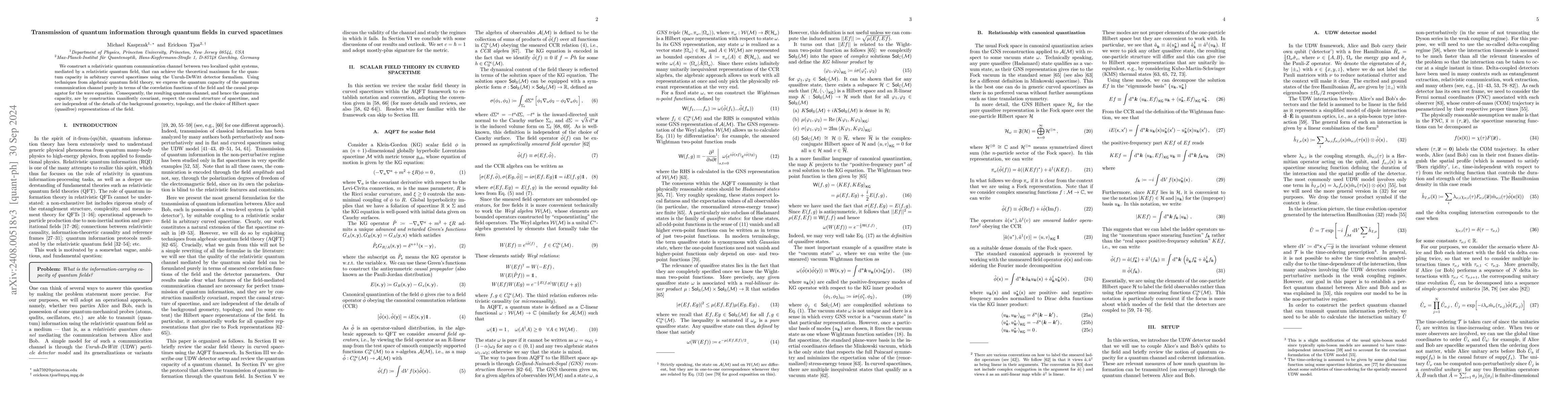 The research employs algebraic quantum field theory and the Unruh-DeWitt detector formalism to construct a relativistic quantum communication channel mediated by a quantum field in curved spacetimes.