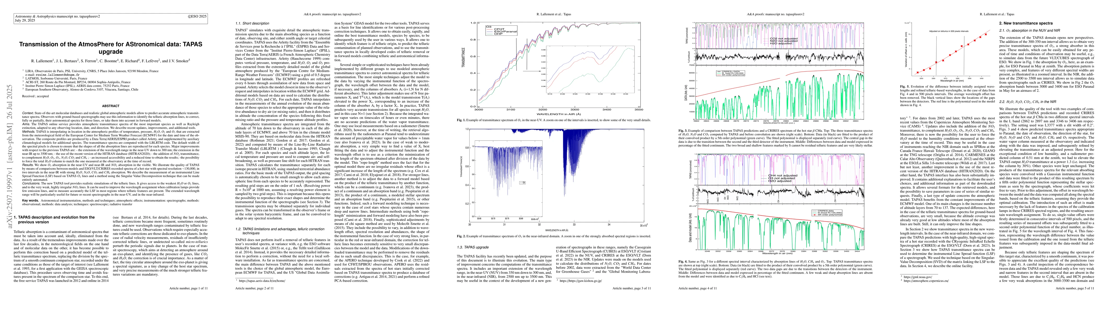 State-of-the-art molecular databases and realistic global atmospheric models allow to predict accurate atmospheric transmittance spectra. The TAPAS online service provides atmospheric transmittance spectra of the most important species as well as Rayleigh extinction, adapted to any observing location, date, and direction. We describe recent updates, improvements, and additional tools. TAPAS is interpolating in location in the atmospheric profiles of temperature, pressure, H$_2$O, O$_2$ and O$_3$ extracted from the ECMWF and produced by Arletty, a Data Terra/AERIS/ESPRI product, supplemented by auxiliary climatological models for additional species. The transmittance spectra are computed with the LBLRTM code. The resolution is chosen to ensure that the shapes of all absorption lines are reproduced for each species. Major improvements are: $\bullet$ the extension of the wavelength range in the near-UV down to 300 nm; in the near-IR up to 3500 nm; $\bullet$ the use of HITRAN2020; $\bullet$ the addition of NO$_2$, to complement H$_2$O, O$_2$, O$_3$, N$_2$O, CO$_2$ and CH$_4$; $\bullet$ an increased accessibility; $\bullet$ the possibility to force the total H$_2$O column to match the one measured at the observatory. We show O3 absorption in the near-UV and near-IR and NO2 absorption in the visible. We illustrate the quality of TAPAS by means of comparisons between models and ESO/VLT/CRIRES recorded spectra of a hot star with spectral resolution 130,000, in two intervals with strong H$_2$O, NO$_2$, CO$_2$ and CH$_4$ absorption. We describe the measurement of an instrumental Line Spread Function (LSF) based on TAPAS O$_2$ lines and a method using the Singular Value Decomposition technique that can be made entirely automated. TAPAS can be used to improve the wavelength and to measure the LSF in regions where telluric features are present. The extended wavelength range will be particularly useful for future or recent spectrographs in the near-UV and in the near-infrared.