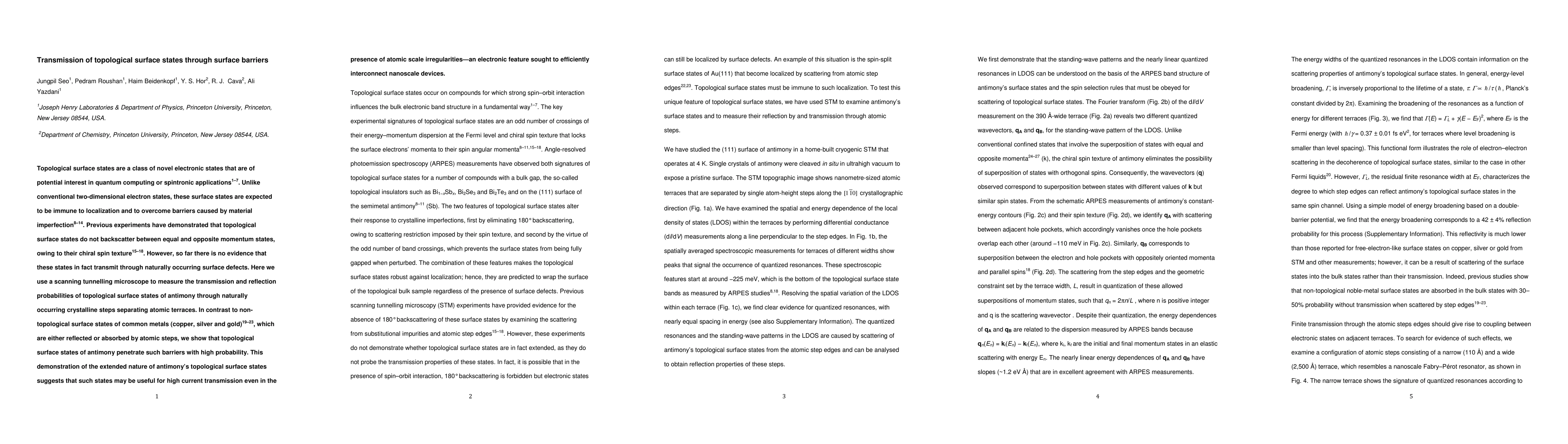 Topological surface states in antimony can penetrate naturally occurring atomic barriers with high probability, suggesting a promising feature for efficient electronic interconnection of nanoscale devices.