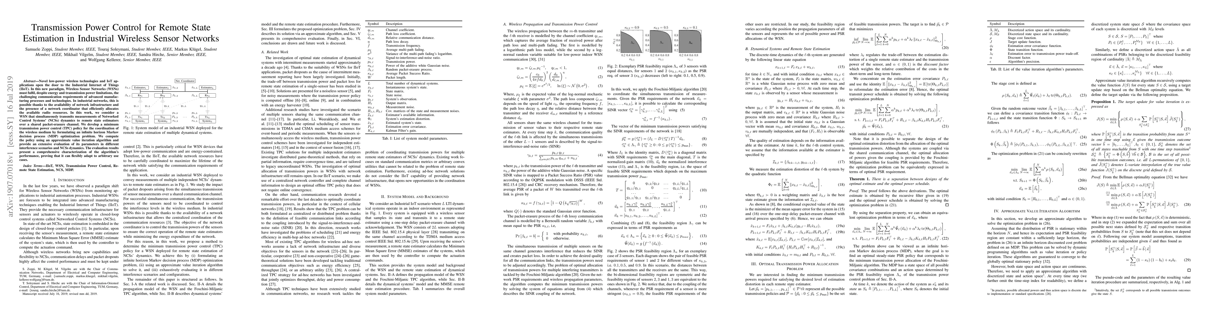 Novel low-power wireless technologies and IoT applications open the door to the Industrial Internet of Things (IIoT). In this new paradigm, Wireless Sensor Networks (WSNs) must fulfil, despite energy and transmission power limitations, the challenging communication requirements of advanced manufacturing processes and technologies. In industrial networks, this is possible thanks to the availability of network infrastructure and the presence of a network coordinator that efficiently allocates the available radio resources. In this work, we consider a WSN that simultaneously transmits measurements of Networked Control Systems' (NCSs) dynamics to remote state estimators over a shared packet-erasure channel. We develop a minimum transmission power control (TPC) policy for the coordination of the wireless medium by formulating an infinite horizon Markov decision process (MDP) optimization problem. We compute the policy using an approximate value iteration algorithm and provide an extensive evaluation of its parameters in different interference scenarios and NCSs dynamics. The evaluation results present a comprehensive characterization of the algorithm's performance, proving that it can flexibly adapt to arbitrary use cases.