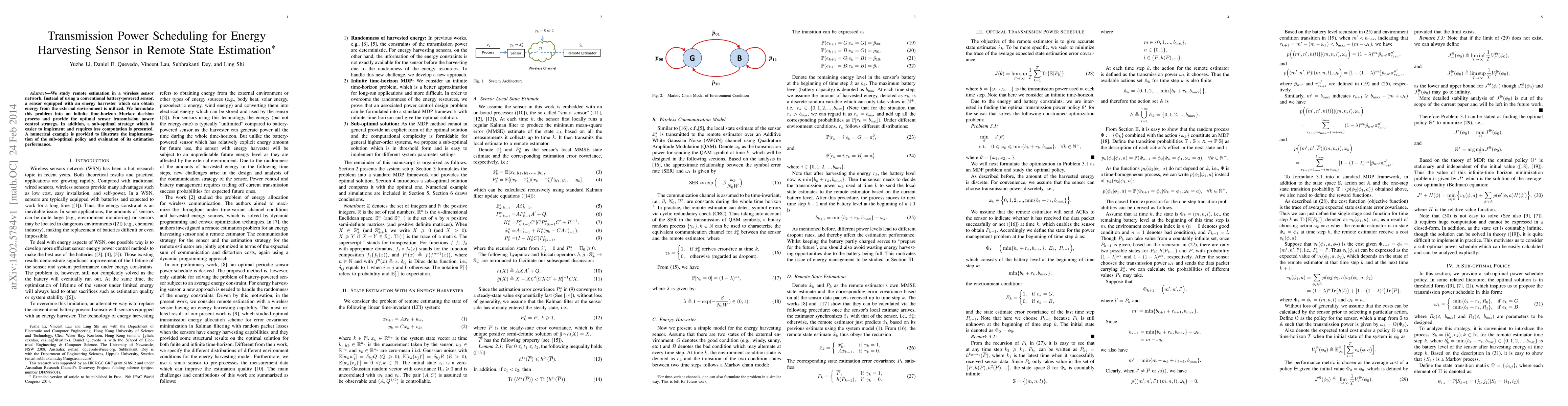 This paper proposes optimal and sub-optimal strategies for transmission power scheduling in an energy harvesting sensor used for remote state estimation in wireless sensor networks. The optimal strategy is derived from an infinite time-horizon Markov decision process, while the sub-optimal approach offers a simpler, less computationally intensive alternative, demonstrated through a numerical example.