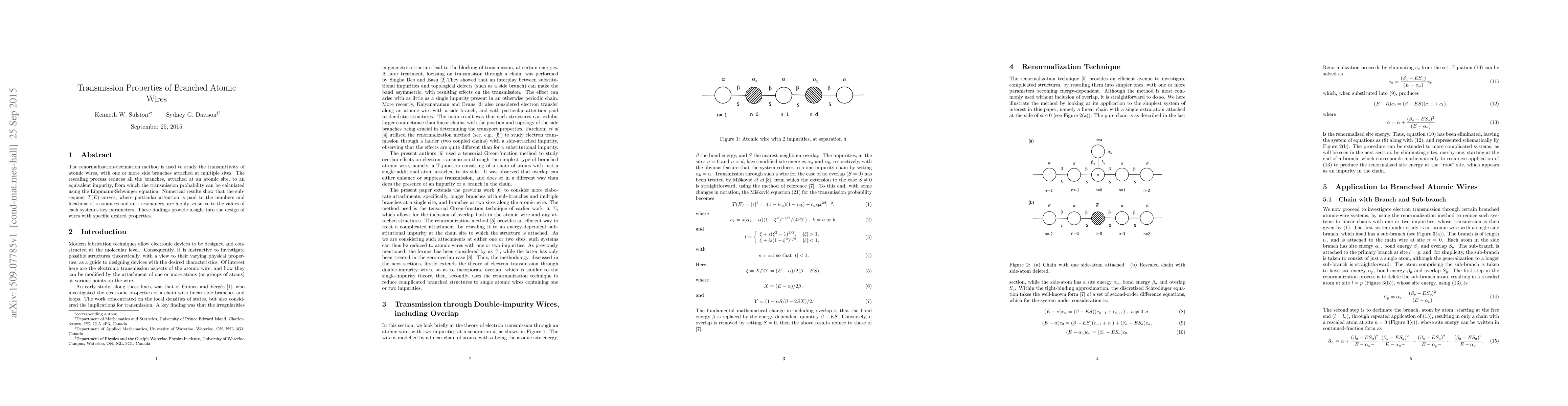 The renormalization-decimation method is used to study the transmittivity of atomic wires, with one or more side branches attached at multiple sites. The rescaling process reduces all the branches, attached at an atomic site, to an equivalent impurity, from which the transmission probability can be calculated using the Lippmann-Schwinger equation. Numerical results show that the subsequent T(E) curves, where particular attention is paid to the numbers and locations of resonances and anti-resonances, are highly sensitive to the values of each system's key parameters. These findings provide insight into the design of wires with specific desired properties.
