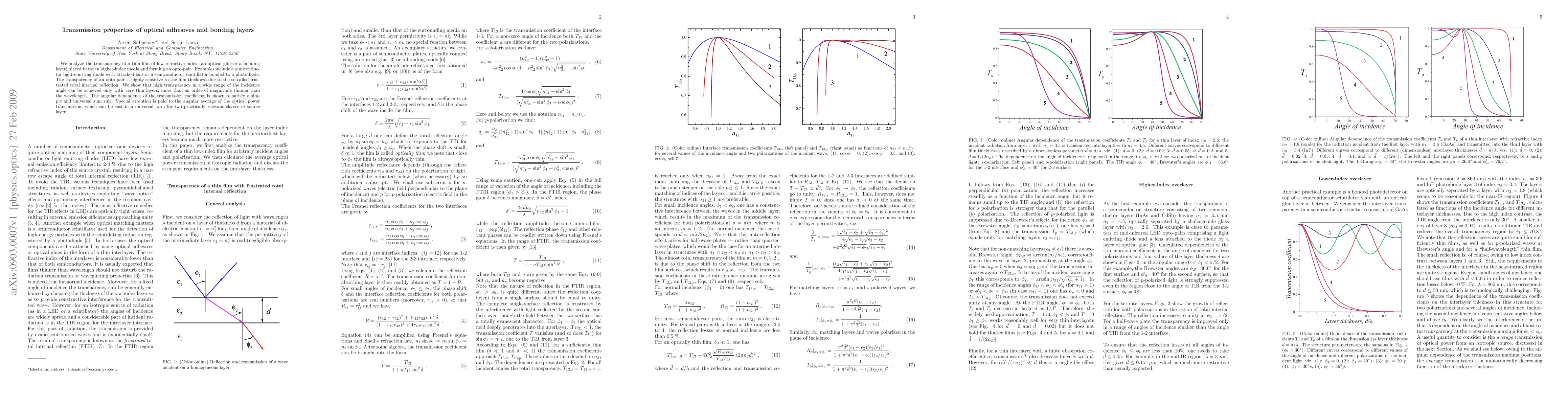 We analyze the transparency of a thin film of low refractive index (an optical glue or a bonding layer) placed between higher-index media and forming an opto-pair. Examples include a semiconductor light-emitting diode with attached lens or a semiconductor scintillator bonded to a photodiode. The transparency of an opto-pair is highly sensitive to the film thickness due to the so-called frustrated total internal reflection. We show that high transparency in a wide range of the incidence angle can be achieved only with very thin layers, more than an order of magnitude thinner than the wavelength. The angular dependence of the transmission coefficient is shown to satisfy a simple and universal sum rule. Special attention is paid to the angular average of the optical power transmission, which can be cast in a universal form for two practically relevant classes of source layers.