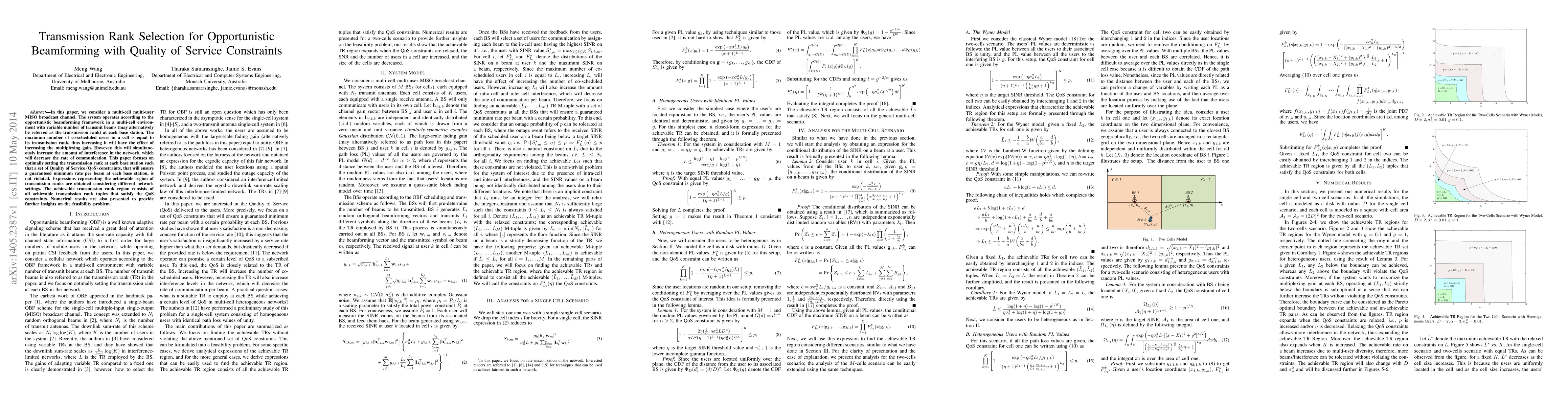 In this paper, we consider a multi-cell multi-user MISO broadcast channel. The system operates according to the opportunistic beamforming framework in a multi-cell environment with variable number of transmit beams (may alternatively be referred as the transmission rank) at each base station. The maximum number of co-scheduled users in a cell is equal to its transmission rank, thus increasing it will have the effect of increasing the multiplexing gain. However, this will simultaneously increase the amount of interference in the network, which will decrease the rate of communication. This paper focuses on optimally setting the transmission rank at each base station such that a set of Quality of Service (QoS) constraints, that will ensure a guaranteed minimum rate per beam at each base station, is not violated. Expressions representing the achievable region of transmission ranks are obtained considering different network settings. The achievable transmission rank region consists of all achievable transmission rank tuples that satisfy the QoS constraints. Numerical results are also presented to provide further insights on the feasibility problem.