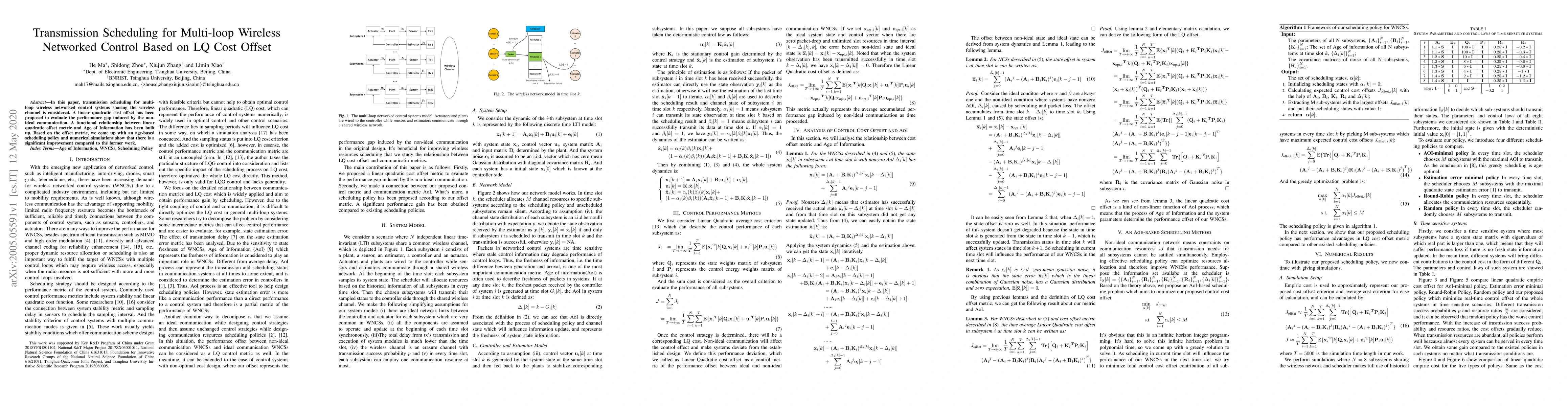 In this paper, transmission scheduling for multiloop wireless networked control systems sharing the wireless channel is considered. A linear quadratic cost offset has been proposed to evaluate the performance gap induced by the nonideal communication. A functional relationship between linear quadratic offset metric and Age of Information has been built up. Based on the offset metric, we come up with an age-based scheduling policy and numerical simulations show that there is a significant improvement compared to the former work.