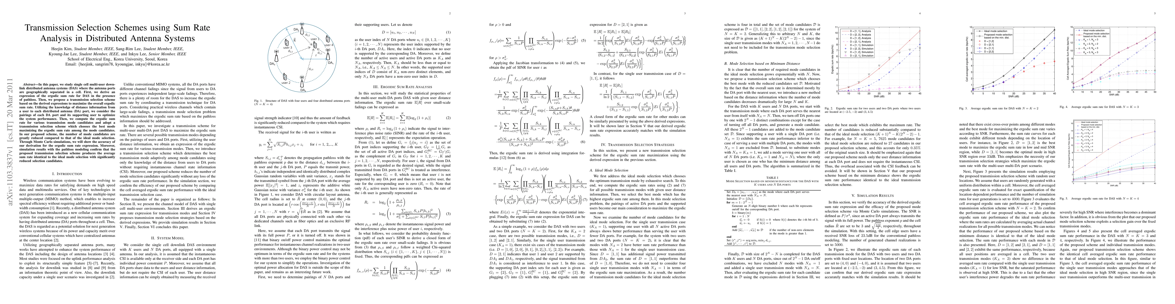 In this paper, we study single cell multi-user downlink distributed antenna systems (DAS) where the antenna ports are geographically separated in a cell. First, we derive an expression of the ergodic sum rate for DAS in the presence of pathloss. Then, we propose a transmission selection scheme based on the derived expressions to maximize the overall ergodic sum rate. Utilizing the knowledge of distance information from a user to each distributed antenna (DA) port, we consider the pairings of each DA port and its supporting user to optimize the system performance. Then, we compute the ergodic sum rate for various transmission mode candidates and adopt a transmission selection scheme which chooses the best mode maximizing the ergodic sum rate among the mode candidates. In our proposed scheme, the number of mode candidates are greatly reduced compared to that of the ideal mode selection. Through Monte Carlo simulations, we will show the accuracy of our derivation for the ergodic sum rate expression. Moreover, simulation results with the pathloss modeling confirm that the proposed transmission selection scheme produces the average sum rate identical to the ideal mode selection with significantly reduced selection candidates.